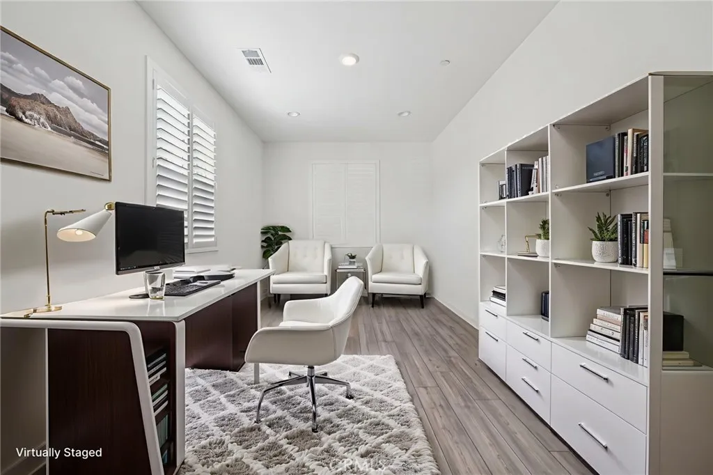 Craving a home with designer finishes and future-ready upgrades? Set on a beautifully manicured lot, this 4-bedroom, 3-bath Yucaipa residence shines like new with bright windows, stylish shutters, and an inviting open-concept layout! Inside, recessed lighting highlights the bespoke cabinetry, custom countertops, and stainless steel appliances in the contemporary kitchen, complete with a central island and pantry for added functionality. A guest room on the main level offers convenience, while the generous primary retreat upstairs features dual walk-in closets and a serene ensuite. A flexible office adapts with ease for remote work or to a fifth bedroom. The laundry area with sink and attached 2-car garage adds everyday comfort. Outside, a low-maintenance yard surrounds the wide patio, already prepped for your dream outdoor kitchen, pool, or spa. Enjoy the perks of a concrete retaining wall, solar panels, water softener system, and a $15,000 forgivable grant. With proximity to Yucaipa Regional Park, local shops, and the I-10 Fwy, come see how this tranquil haven could be part of your next chapter!