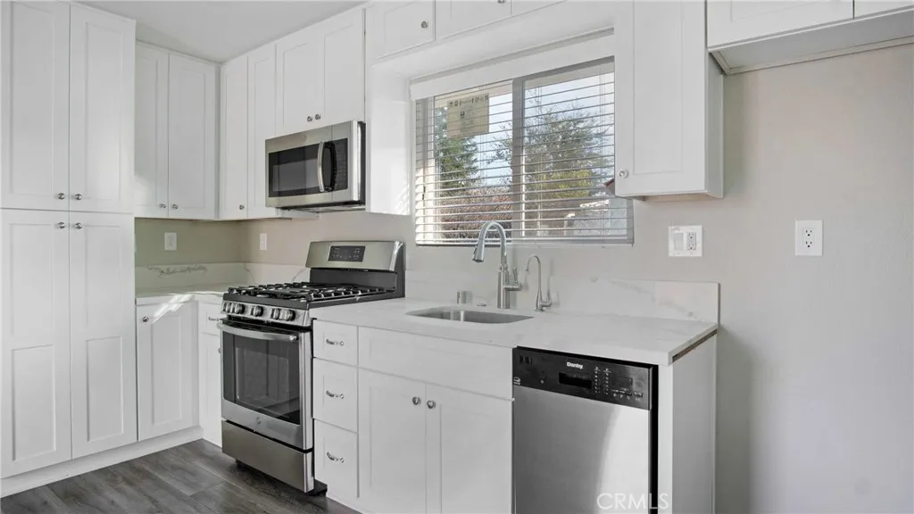 Charming 2-Bedroom, 2-Bath Home with Bonus Room! This super charming home offers approximately 620 sq. ft. of well-designed living space featuring a comfortable 2-bedroom, 2-full-bath layout. The open floor plan includes quartz countertops, shaker-style cabinets, stainless steel appliances, and a stackable washer and dryer for added convenience. Enjoy year-round comfort with mini-split AC units, and tasteful finishes like laminate flooring, carpeted bedroom, and modern touches throughout. Adding even more versatility, the property also includes a 200 sq. ft. air-conditioned bonus room with an epoxied floorperfect for a home office, gym, or creative space. Nestled at the back of the property for extra privacy, this home shares a driveway with the front unit and offers a peaceful retreat away from the street. Conveniently located near the 57 Freeway, youll be just minutes from shopping, restaurants, and entertainment, making it the perfect blend of comfort and convenience.