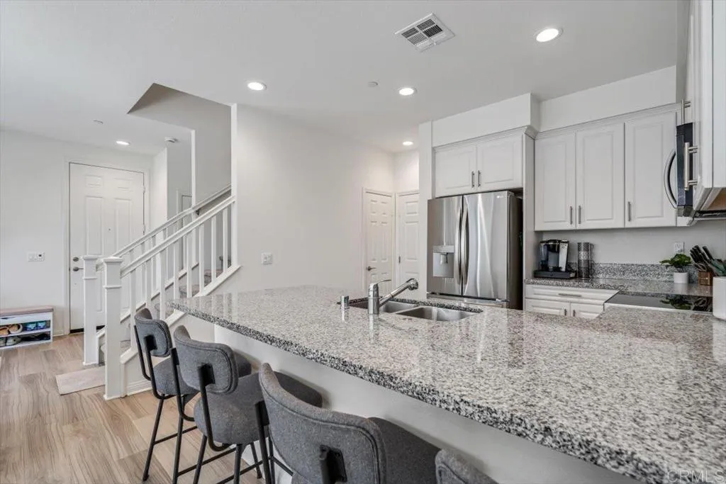 Welcome to this beautiful newer-built (2023) corner unit located near Rancho San Diego! This stunning 3-bedroom, 2.5-bath home offers a bright open-concept layout with luxury vinyl plank flooring throughout the downstairs. The modern kitchen features granite countertops, white cabinets, stainless steel appliances, and a spacious pantry, with all appliances including the washer and dryer included. Upstairs, youll find three comfortable bedrooms, two full baths with linen closets, and a convenient laundry room. Enjoy an abundance of natural light and beautiful mountain views. Additional highlights include a two-car garage, paid-off solar panels, EV charger and access to community amenities such as hiking trails, dog-friendly areas, and sparkling pools. Perfect for families, pet lovers, and outdoor enthusiastsdont miss the opportunity to make this home yours!