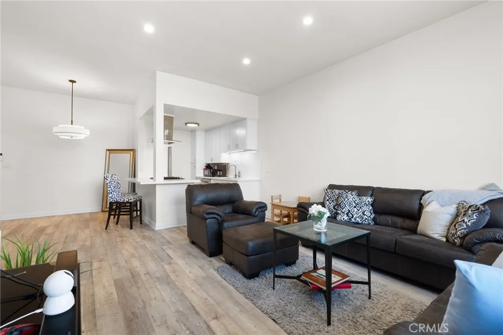 Light, Bright & Full of Style in the Heart of Inglewood! Welcome home to this front-facing, private end-unit condo featuring 2 bedrooms and 2 bathrooms in one of Inglewoods most convenient locations. The moment you walk in, youll be greeted by soaring 12-foot ceilings the only unit in the complex with this stunning architectural feature creating a spacious, airy feel with natural light. Enjoy a modern kitchen with a sparkling island, stainless steel appliances, perfect for entertaining or casual dining. The open-concept living room flows seamlessly to a patio, ideal for relaxing or enjoying your morning coffee. The primary suite offers a walk-in closet and an en suite bathroom with a large vanity and generous counter space. The second bedroom features oversized windows, soaking in beautiful natural light throughout the day. Additional highlights include recessed lighting, wood laminate floors and new paint. Community amenities include a recreation room, well-maintained green walkways, and low HOA dues. With its unbeatable price and location, this home is the perfect opportunity for a buyer who wants to live on the Westside, close to shops, restaurants, SoFi Stadium, and easy access to the beach and freeways.