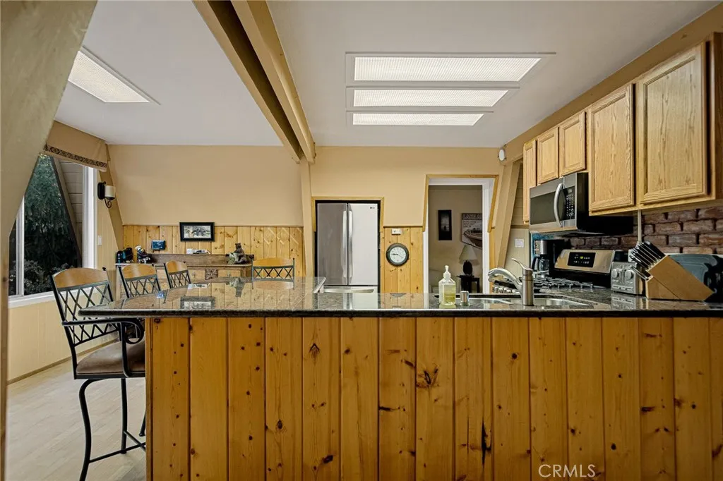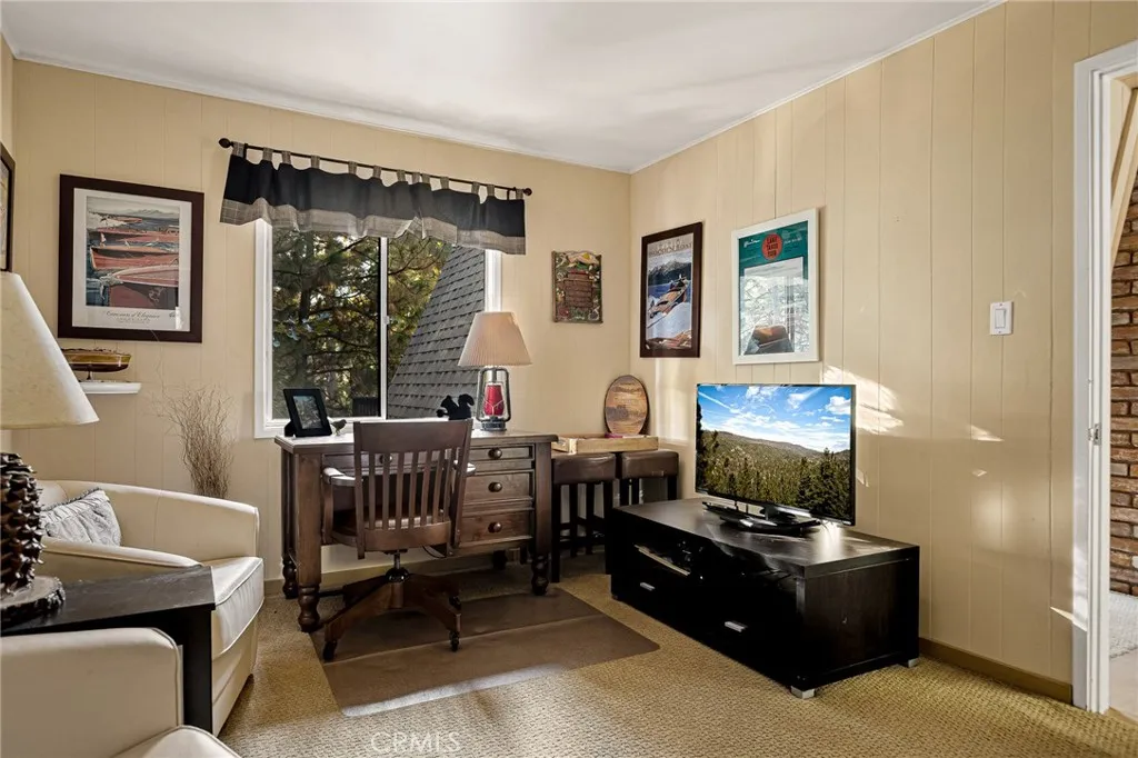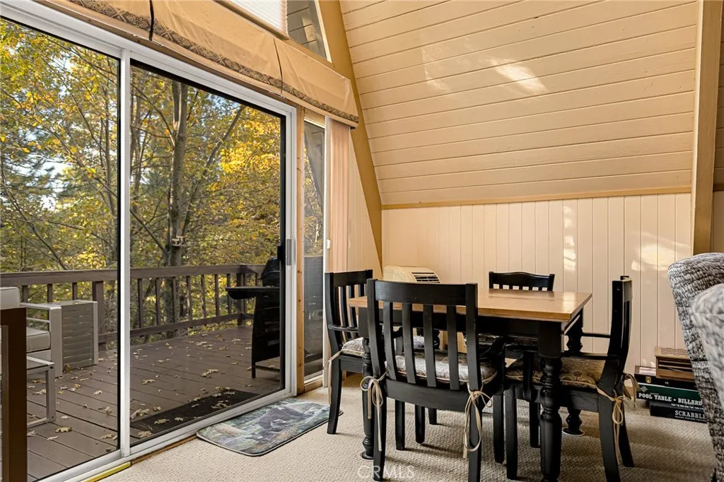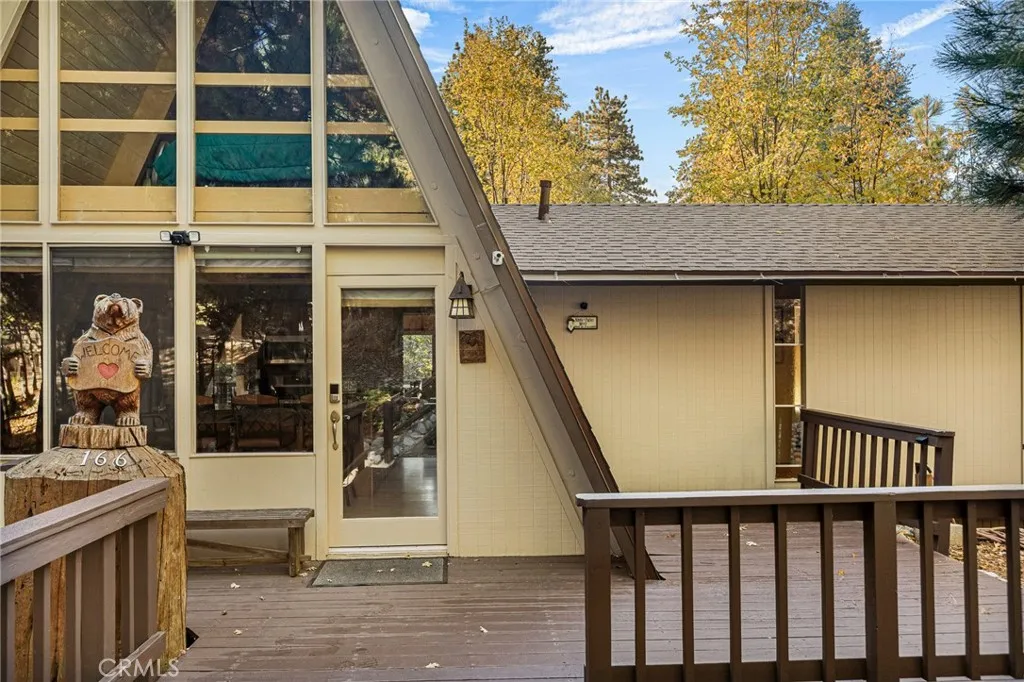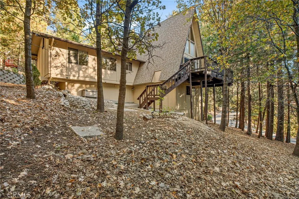 Just the A-Frame you have been looking for! Located across from the Lake Arrowhead Golf Course, and on 2 lots totaling 24,950 sqft of land,, that's just over half an acre. This home is so unique, located off a private access road and tucked in where you feel very private. The land is so fun with many walkways that lead to private seating areas and decks, and even a horse shoe pit. You can easily see the pride of ownership form the moment you arrive. The home is nearly all one level living with the ease of just a handful of stairs to the front door. Once inside you will find on the main floor, 3 bedrooms, 2 baths, a large kitchen, living room with the vaulted A ceilings offering a wall of windows to admire the outside, and attached deck. There is a small loft with pull down ladder that provides access to a separate little sleeping area. Downstairs is a separate bedroom and bath with it's own access to outside. Don't miss all the storage areas and secret doors. One which leads to the laundry area. The potential with this property is endless. You could possibly build a garage and have main street access point. Yes, this is located in Arrowhead Woods and has lake rights. This is a must see to appreciate all that it has to offer.