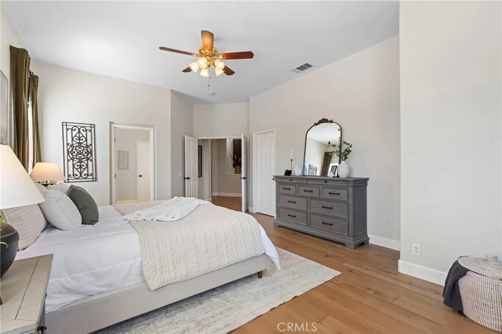 Splendor awaits in this rare, turnkey single-story home in the highly desirable Temeku Hills community! Ideally situated at the end of a quiet cul-de-sac with no rear neighbors, this property offers peaceful mountain views, exceptional privacy, and wonderful proximity to all that Temecula living has to offer. Enjoy easy freeway access and be just minutes from Wine Country, Pechanga Resort & Casino, Old Town, and top-tier shopping and dining. Step inside and instantly feel the warmth and sophistication of this pristine home, where pride of ownership shines throughout. Rich maple hardwood flooring, plantation shutters, and abundant natural lightenhanced by lovely kitchen skylightscreate a bright, welcoming ambiance. A spacious den/flex room flows effortlessly into the open-concept great room, framing beautiful backyard and mountain views. The gourmet kitchen is a showpiece, boasting quartz countertops, elegant zellige tile backsplash, stainless steel appliances, a center island with storage, large walk-in pantry, and barstool seatingperfect for gatherings. Through elegant French doors, the primary suite is a serene retreat offering a custom-designed walk-in closet, an ensuite bath with dual sinks, vanity area, separate tub and shower, and a private water closet. The large laundry room with storage cabinets adds everyday convenience, while the secondary bedroom enjoys a charming view of the front garden and easy access to the full guest bath. Step outside to a low-maintenance backyard designed for relaxation and entertainingcomplete with mountain views, open space behind the h