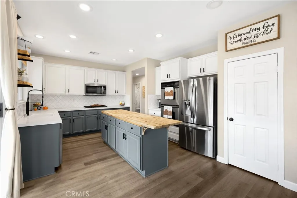 Youre in Luck! This beautifully upgraded Eastvale home is now available and offers a spacious and versatile floor plan featuring 5 bedrooms, 3 full baths, and a large loftperfect for entertaining and everyday living. Recent upgrades include new exterior paint, wood laminate flooring, built-in cabinetry in the family room, and new concrete in the backyard. As you enter, the living room with elegant chair railing and crown molding sets the tone for the rest of the home. The dining area provides an ideal space for gathering with friends and family, while the cozy family room features a fireplace, built-in cabinets, a ceiling fan, and abundant natural light. The chef-inspired kitchen boasts a long center island with a butcher block top, quartz countertops, tile backsplash, double ovens (just in time for the holidays), and an expansive walk-in pantry. Upstairs, the primary suite offers a peaceful retreat with an ensuite bathroom featuring a separate shower and soaking tub, dual sinks, and a walk-in closet with custom built-ins. The oversized loft provides the perfect space for a playroom, media area, or home office. Youll also find three additional spacious bedrooms and a full bath upstairs, while the downstairs bedroom and full bath are ideal for guests or multi-generational living. Step outside to the huge backyard, complete with new concrete, a half basketball court, and a fire pitperfect for outdoor fun and entertaining. To top it off, you'll have RV parking and a host of solar panels as added bonuses! Prime location near top-rated schools, shopping, and convenient freeway a
