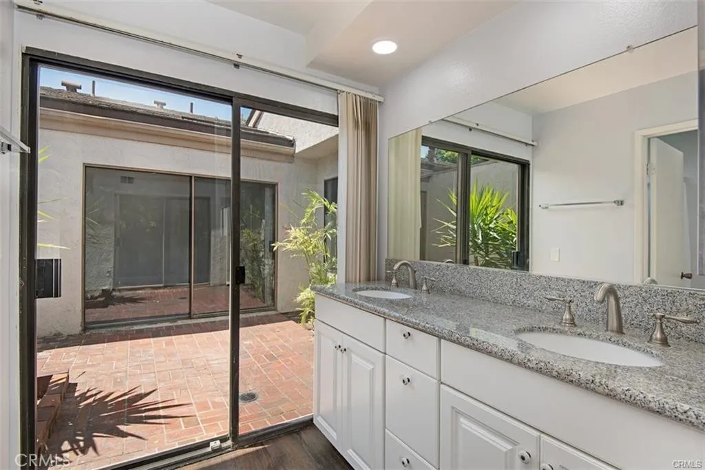 Beautifully maintained, single story, 3 bedroom / 2 bathroom townhome in highly sought after Woodbridge community. AMENITIES INCLUDE: * Contemporary kitchen with quartz countertops with breakfast bar, white finished wood cabinetry, stainless steel sink, white finished appliances (dishwasher, range, built-in microwave and refrigerator), recessed lighting and new tile flooring. * Dining nook off kitchen with window to enclosed courtyard and separate formal dining area between living room and kitchen. * Very large family room with luxury hardwood vinyl flooring, vaulted ceilings and an inviting white brick gas fireplace. Sliding glass door to one of three enclosed patio areas. * Large primary suite with vaulted ceiling and dual mirrored closets and en-suite bathroom featuring dual sinks, white wood cabinets and separte walk-in shower/toilet area. * Two additional bedrooms all nicely sized and feature spacious closets share main hall bathroom with separate vanity area. * CENTRAL AIR CONDITIONING. * Interior enclosed courtyard off primary bedroom and second bedroom and fenced patio area off living room provide multiple areas for entertaining and relaxing. * Fresh new paint throughout and brand new carpet in all bedrooms. * Automatic sprinklers front and back and gardener included. * Washer hookups and storage in spacious two car garage with automatic door opener. * Walking/biking distance to award winning Irvine School district schools (zoned for Zoned for Stonecreek Elementary, Lakeside Middle, and Woodbridge High School), shopping, restaurants; * Unparalleled community ameniti