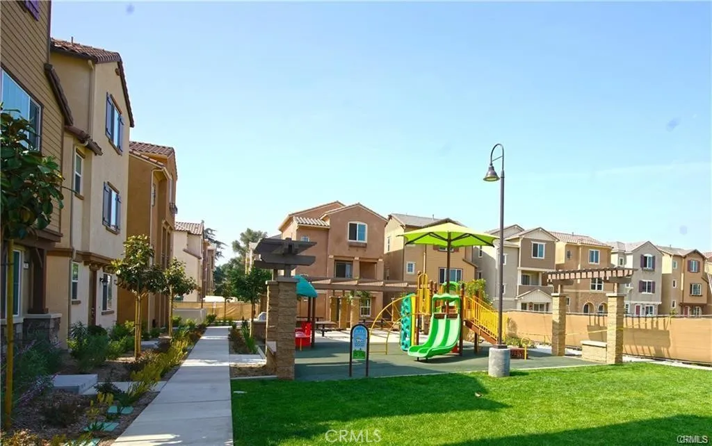 Newly built in 2018, this detached tri-level townhouse is situated in the desirable, gated community of The Grove in North Pomona. The intelligently designed floor plan offers 3 bedrooms, 2 full bathrooms, and 2 powder rooms. The entry level features a versatile open loft ideal as an office or playroom, a convenient powder room, and direct access to a private side yard through a sliding glass door. The second level presents a spacious great room combined with a dining area and a balcony, along with a well-appointed kitchen that includes plentiful cabinetry, granite countertops, a pantry, and a generous center island for casual dining. The upper level hosts the primary suite and two additional bedrooms serviced by a full bathroom. The primary suite includes a large walk-in closet and an en-suite bathroom with dual sinks and quartz countertops. This energy-efficient home is equipped with dual-pane windows, a tankless water heater, and water-saving plumbing fixtures. A 2-car attached garage provides direct access to the interior. Community amenities feature a playground and a BBQ picnic area. The Grove offers excellent proximity to the Claremont Colleges, Claremont Village, Old Town La Verne, and easy access to Metrolink and the 210 and 10 freeways. Truly move-in ready.