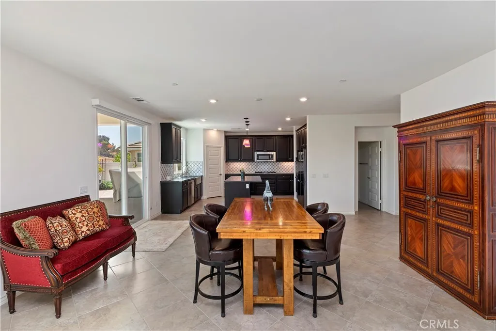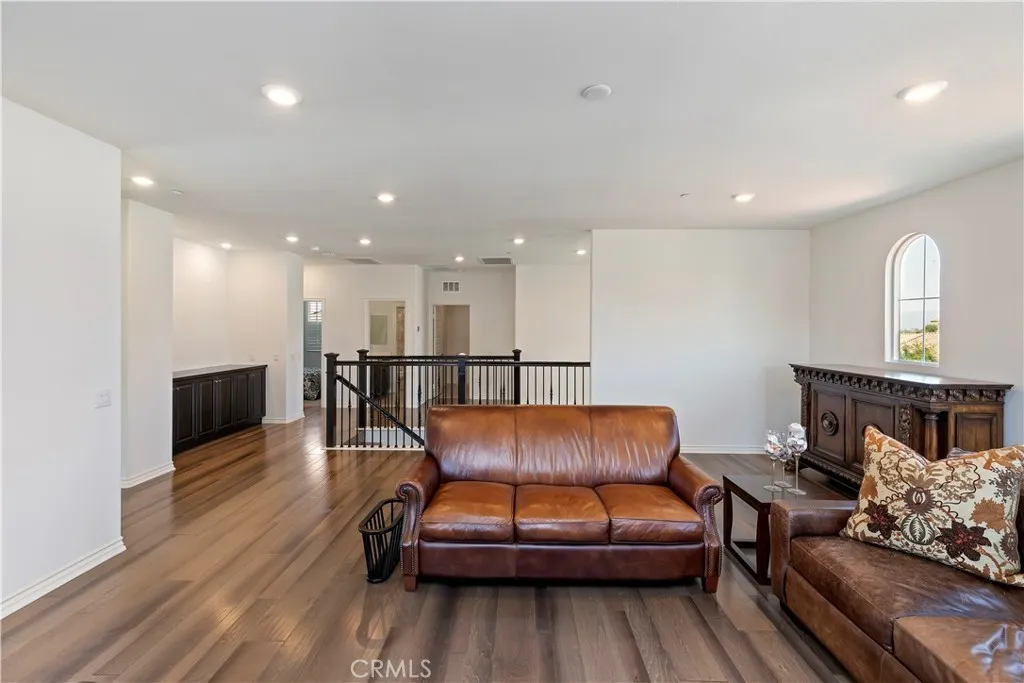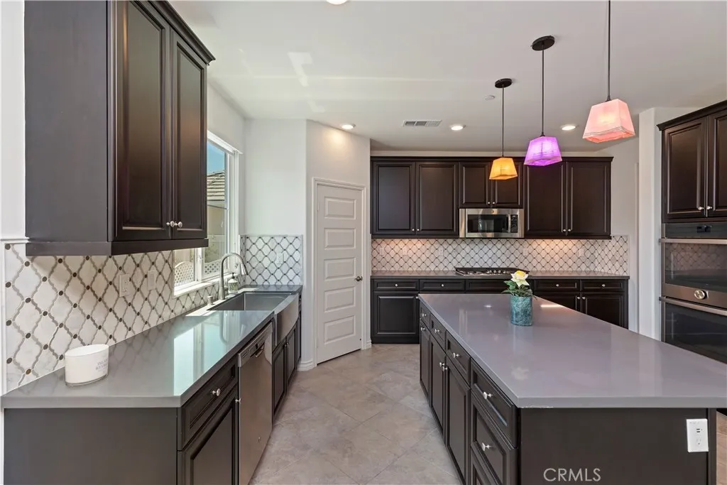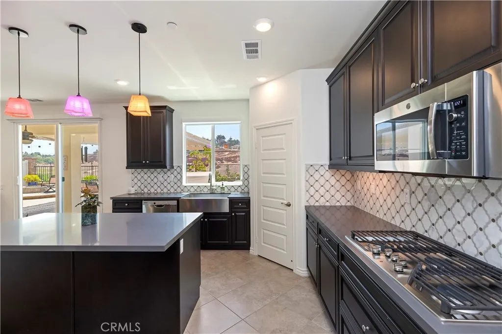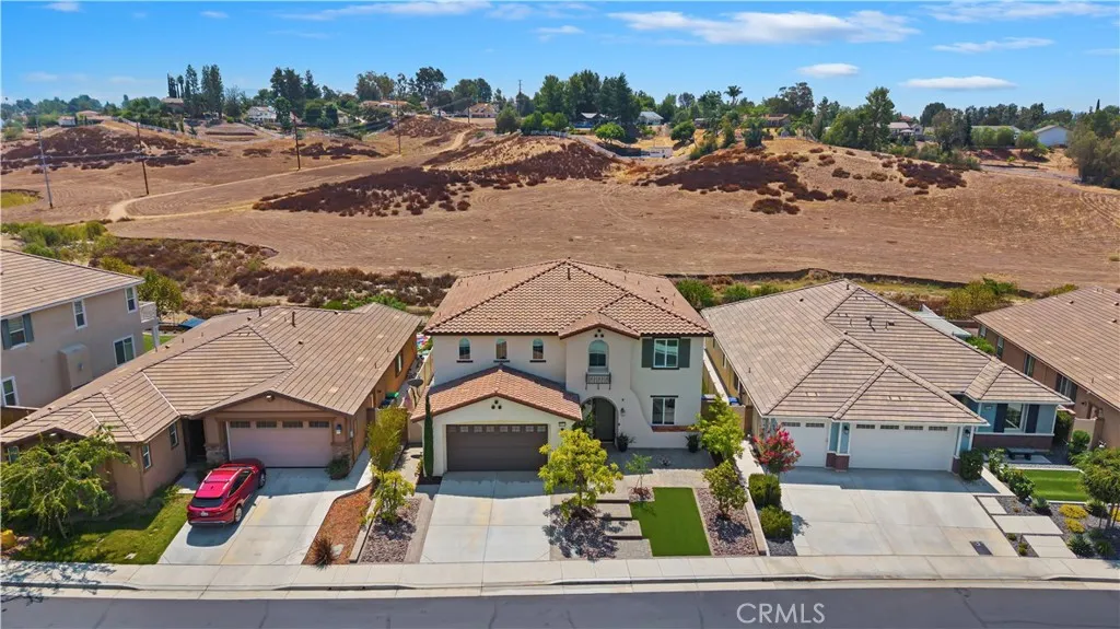 Welcome to this stunning home located in the highly desirable gated community of Nicolas Heightsa small, private enclave in the heart of Temecula offering both privacy and peace of mind. Built in 2019, this 3,648 sq ft residence showcases a sleek, modern layout and exceptional designer upgrades throughout, all set on a premium view lot with no rear neighbors and panoramic scenery that enhances everyday living. The curb appeal is undeniable, with wrought iron accents and fully finished front and back yards featuring eye-catching brick pavers and lush landscaping. Inside, you'll find a light-filled open floor plan with elegant tile and wood flooring, plantation shutters, and brand new interior paint that gives the home a fresh, updated finish. The inviting kitchen is a showstopper, boasting a large quartz island, detailed stone backsplash, pendant lighting, GE Profile stainless steel appliances, a 5-burner stove, double oven, walk-in pantry, and Samsung refrigerator that stays. A butlers pantry adds extra storage and convenience for hosting. The open-concept family room includes a custom fireplace, and a downstairs bedroom with full bath provides ideal flexibility for guests or multi-generational living. Wrought iron staircase railings lead to the second floor, where a spacious upstairs loft-style second living area offers plenty of room to relax, entertain, or create your ideal flex space. Three additional upstairs bedrooms are generously sized, and the secondary bathroom feature modern styling. The luxurious primary suite includes a large walk-in closet, dual sinks, vanity