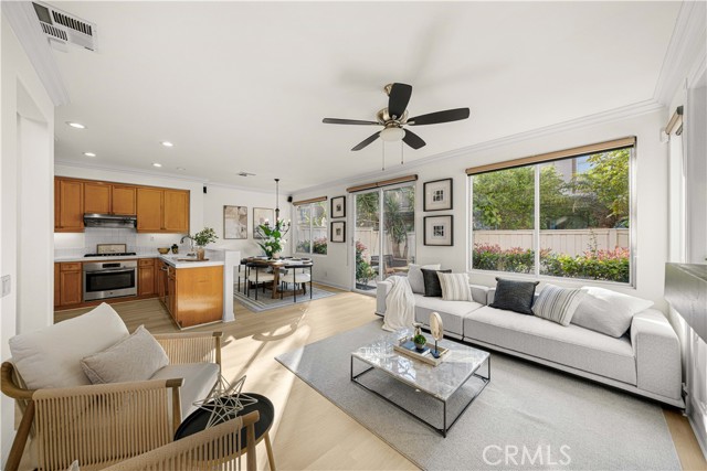 Perched in Irvine’s coveted Westpark community, 9 Santa Luzia Aisle is an updated detached home offering light-filled space and comfort. From the moment you arrive, a gated front courtyard enhances privacy and creates a welcoming entry. Inside, soaring cathedral ceilings and expansive windows fill the home with natural light. Brand-new flooring and fresh interior paint throughout create a clean, modern feel. The living and dining areas flow together, anchored by an open kitchen with ample cabinetry and counter space, while the adjacent dining area opens directly to the backyard for easy indoor-outdoor living. Upstairs, the primary suite enjoys vaulted ceilings and mirrored wardrobes, while secondary bedrooms offer flexibility for family, guests, or a home office. The attached two-car garage with organizers and a full-size driveway—a rare convenience in Irvine—add everyday practicality. The private, low-maintenance yard offers space for weekend BBQs, playtime, or quiet evenings at home. Westpark residents enjoy resort-style amenities: pools, tennis courts, playgrounds, and more. With low HOA dues, low property taxes, and a central Irvine location—minutes to Crossroads, Westpark Plaza, and Centerstone for shopping, dining, and everyday needs, plus access to the 405, 5, and 55 freeways—this home is zoned for award-winning Irvine Unified schools, including Plaza Vista K–8 a short walk away, and offers lasting value in one of Westpark’s most desirable settings.