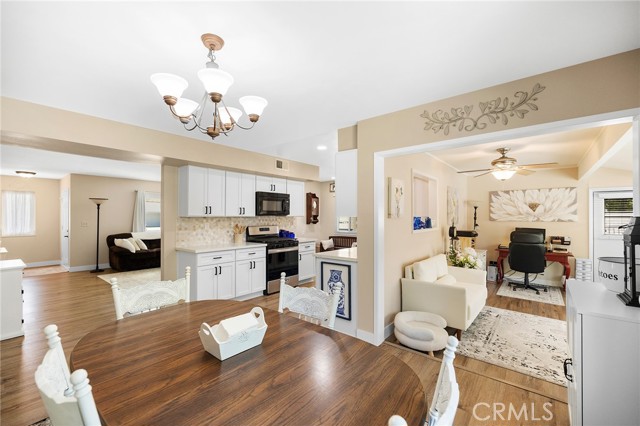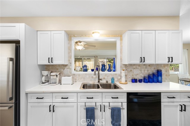 Welcome home to this recently renovated 2 bedroom, 2 bath charmer in an Active 55+ Community in Menifee. There are many updates in this home including new kitchen cabinets with quartz countertops, newer appliances, newer luxury plank flooring throughout and fresh paint. There is a bonus room that is not included in the square footage which adds another 200 square ft to the home. This lovely home has an open and bright floorplan that flows well and offers plenty of space. There is an indoor laundry room with shelving and a storage/work room accessed from the backyard. There is also a one car direct access garage for added convenience. Other recent updates include new windows, a newer water heater and a new electric panel. This home features low maintenance front and rear yards with rock scape, rose bushes and various trees and shrubs and has a fully fenced yard. This home is in the Del Webb 55+ community which has a very low tax rate and low HOA of only $34 per month. The HOA amenities include two pools, spa, clubhouse, billiards, lawn bowling, fitness center and lots of classes and activities! Don't miss the opportunity to make this your new home! Call Lisa today to schedule your appointment.
