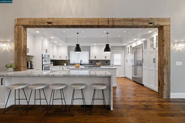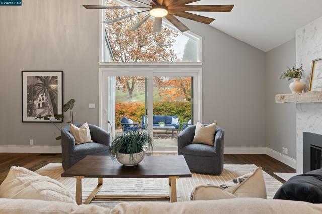 This newly remodeled & updated 4 bedroom, 3.5 bath single level home looks out on the 5th hole of the Blackhawk golf course. Updates to the home include a gorgeous kitchen with quartz countertops, oversized island, top of the line s/s appliances including a gas stove, double ovens, beautiful lighting, wood beam trim & custom cabinetry. Gorgeous hardwood flooring & new carpets throughout. High vaulted ceilings with an abundance of windows allows for natural light to flow in and brighten this home. Two fireplaces including one in the living room and one in the secondary primary bedroom. The primary bedroom offers direct access to the newly landscaped rear yard and offers a spacious walk-in closet. Amazing remodeled bathroom features heated floors, beautiful soaking tub, shower with multiple heads & more storage than you could hope for. Secondary bedrooms share an updated Jack 'n Jill bathroom. The spacious rear yard includes newly installed sod, patio, decking and mature trees. A perfect environment to call home and entertain family and friends. This breathtaking residence is located on a gorgeous tree lined street in the private community of Blackhawk CC with 24/7 security gate access. Close to top rated schools, parks and conveniently located to shopping & restaurants. Views: Ridge