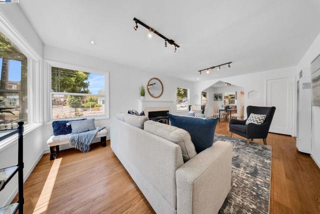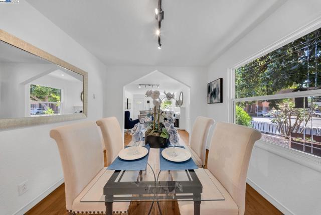 Discover the delightful charm of 205 Julius Street, San Leandro, CA, a cozy and inviting 2-bedroom, 1-bathroom home. With 1,073 sq ft of living space on a spacious 5,390 sq ft corner lot, this detached house offers a unique blend of character and modern amenities. Enclosed by a classic white picket fence, the property exudes a warm, welcoming feel. Step into the inviting living area featuring warm hardwood floors and a charming fireplace. The eat-in kitchen is equipped with stainless steel appliances, including a refrigerator, and a delightful breakfast nook for casual dining. The formal dining room, perfect for hosting, offers ample space for gatherings. The laundry room comes with a washer and dryer, enhancing convenience. Enjoy the benefits of completed section 1 and foundation work, ensuring peace of mind. Parking is a breeze with included space, and the outdoor area is perfect for relaxation. This lovely home, with its combination of vintage elegance and modern updates, is a rare find in San Leandro.