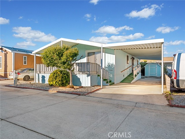 Charming 2-Bedroom Home in Santiago Apple Valley Estates! Located in the desirable Santiago Apple Valley Estates, an all-age community offering resort-style amenities—clubhouse, pool, playground, and more. This inviting 2-bedroom, 2-bath manufactured home delivers comfort, convenience, and value. Featuring 1,056 sq. ft. of modern living space, the home offers a spacious kitchen, well-sized bedrooms, and an open layout ideal for both relaxation and entertaining. Nestled on a premium corner lot, it provides added privacy within a peaceful, well-established Apple Valley neighborhood close to shopping, dining, and everyday essentials. Additional highlights include a covered carport, storage shed, newer hot water heater, wall furnace, evaporative cooler, and an updated guest bathroom. Perfect for anyone seeking an affordable and comfortable lifestyle, this charming home offers the ideal blend of tranquility, community amenities, and practical living. Don’t miss your opportunity to make it yours!