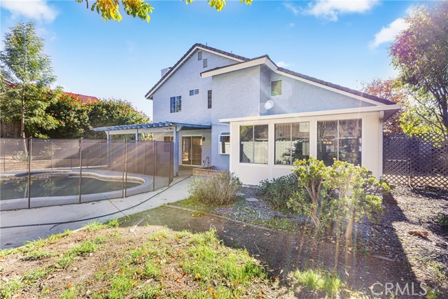Welcome to this highly sought-after North Moreno Valley pool home offering 3 bedrooms, 2.5 bathrooms, and 1,930 sq. ft. of living space on a 7,841 sq. ft. lot. This home features tall ceilings, abundant natural light, and a welcoming layout that includes a formal living room, dining area, and a cozy family room with a fireplace. The open kitchen overlooks the backyard and offers granite countertops, a kitchen island, a breakfast bar, and plenty of cabinetry and counter space. A large bonus sunroom downstairs provides the perfect space for a home gym, office, or additional living area. Upstairs, you’ll find all three bedrooms, including a spacious primary suite with a walk-in closet and an updated en-suite bathroom featuring a refreshed shower and tub. The home also includes ceiling fans throughout, located in a cul-de-sac, a three-car garage, RV parking, and no HOA or Mello-Roos taxes. The private backyard is perfect for entertaining and features an upgraded pool and spa with safety fencing, a covered patio, and a grass area. Located in a desirable neighborhood in North Moreno Valley near Palm Middle School and Northridge Elementary, this home offers comfort, convenience, and a true California lifestyle with your own private pool oasis.
