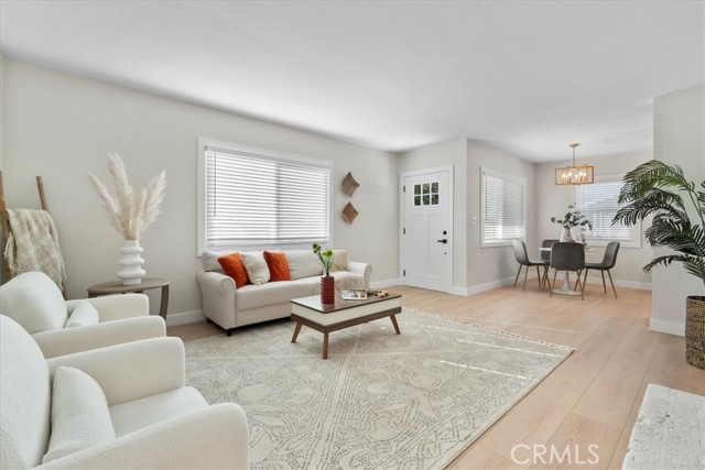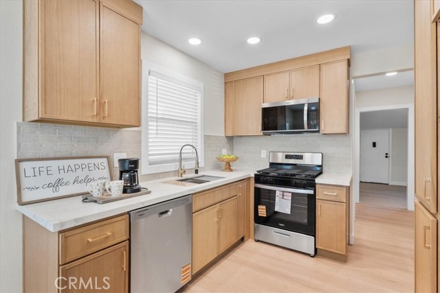 This beautifully remodeled home shines inside and out, featuring all-new dual-pane windows and fresh, modern landscaping that enhance both comfort and curb appeal. Located within walking distance to schools and close to freeways, shopping, and dining, this home offers unmatched convenience for everyday living. Inside, enjoy a brand-new open kitchen with slim-line white oak cabinets, quartz countertops, and new stainless steel appliances—a perfect blend of modern style and everyday functionality. The main living areas feature beautiful wood-look floors, while the bedrooms are finished with plush new carpet for added warmth and comfort. Throughout the home, new doors, fresh casing, and designer finishes create a clean, contemporary look. Both bathrooms have been completely upgraded with new vanities, quartz counters, and stylish tiled showers, offering a spa-like feel. Outside, the home offers private alley access, a large backyard, and room for plenty of parking, making it ideal for extra vehicles, work trucks, or recreational toys. Completely turnkey and offered at one of the lowest prices in the area, this home delivers exceptional value and modern living. A must-see!