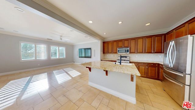 Welcome to 19320 Carranza Lane! This exceptional 4-bedroom, 3-bath residence offers 2,308 sq. ft. of refined living in the highly desired Plum Canyon community of Santa Clarita. Framed by tranquil canyon views and set on a peaceful residential street, this thoughtfully upgraded home blends comfort, elegance, and modern convenience in one stunning package. This former model home offers a beautifully designed interior featuring tile and wood flooring, abundant natural light, and an inviting open layout perfect for both relaxation and entertaining. The formal living area is enhanced with an upgraded built-in surround sound system and a massive wall-mounted TV, creating a true cinematic experience. The gourmet kitchen is the heart of the home, complete with a center island, granite countertops, stainless steel appliances (refrigerator, stove, microwave, and dishwasher), and generous cabinet storage and pantry for effortless meal preparation. Offering exceptional versatility, the home features a downstairs bedroom ideal for guests, or a private office. Additionally, there is an extra "multi-purpose" room upstairs, that can serve as a playroom, media space, or additional workspace. The remaining spacious upstairs bedrooms provide comfort and privacy, while the primary suite captures peaceful canyon scenery. Enjoy seamless indoor-outdoor living with both a front yard and backyard, perfect for gatherings or quiet evenings. A cozy outdoor fireplace, TV and covered seating area elevates the atmosphere, making the backyard ideal for relaxing under the stars, or entertaining. Additional premium features include: Attached 2-car garage with Tesla Charger and Epoxy flooring, NewAge Bold Series garage cabinets, 5 Smart 4k TVs, Pre-installed Vivint Smart Home security system, Smart Thermostats, Tile Roof Style Solar panels to significantly reduce electricity costs, Surround sound system in living room and Garage! Located in beautiful Plum Canyon, this home offers easy access to parks, hiking trails, top-rated schools, shopping, and dining while providing a serene retreat with scenic canyon views.19320 Carranza Lane is a rare opportunity to enjoy elevated living in one of Santa Clarita's most desirable neighborhoods.
