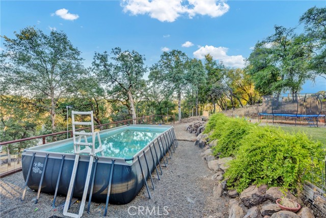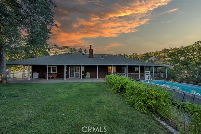 Country Living in the peaceful Hidden Valley Ranchos! This spacious 3-bedroom, 2-bathroom home features a dedicated office and a generous 20x14 bonus room—offering flexible living for families, hobbyists, or work-from-home lifestyles. Tucked away on nearly 7 serene acres, this inviting home boasts an open floor plan with an expansive family room, highlighted by a stunning barrel ceiling and cozy wood-burning stove—perfect for relaxing evenings or entertaining guests. The heart of the home is the well-appointed kitchen, complete with an island cooktop, breakfast bar, an abundance of cabinetry, full panty and even a built-in desk area for added functionality. The private primary suite is set apart from two comfortable guest rooms and a full guest bath. Step outside onto the wide, wrap-around covered porch to take in breathtaking views of oak-dotted hillsides and enjoy the sounds of the seasonal creek that winds alongside the property. The backyard offers a fenced-in oasis with a nearly new above-ground pool for cooling off on hot summer days, lush lawn front & back, and ample parking—including room for your RV, Boat, Side by Side and more! The handy pumphouse with attached workshop offer additional storage nearby. For those with a green thumb or a love of animals, there’s a fenced garden area with raised beds, a separate fenced livestock zone, and a barn/stable with level pastureland. With thoughtful fire-safe landscaping and a newer roof, this property is ready for its next chapter!