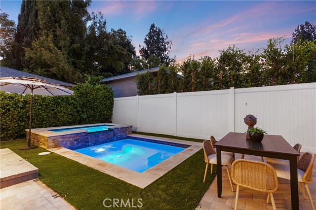 Situated on a peaceful cul-de-sac in a highly sought-after Sherman Oaks neighborhood, this turnkey home has been tastefully updated inside and out. Natural light floods the open and inviting floor plan, highlighting the charming details and timeless character found throughout. At the heart of the home lies the designer chef’s kitchen, equipped with premium stainless-steel appliances, quartz countertops and a built-in breakfast nook. Open to the kitchen, there’s a formal dining room and spacious family room that boasts lofty 14ft ceiling and a Panoramic Door that seamlessly extends your living space into the backyard. Step outside to your private retreat, where you’ll find an oversized spa with a cascading waterfall flowing into the heated pool, a fully equipped summer kitchen, outdoor shower and ample patio space for relaxing or enjoying an al fresco meal. This home offers four generously sized bedrooms and three full bathrooms, including a luxurious primary suite that features a custom built-in closet and spa-inspired bathroom, complete with a soaking tub, large glass-enclosed shower and double vanity. Additional highlights include a formal living room with a cozy fireplace, dedicated laundry room, security system, smart home features (built-in speakers, Nest thermostat, etc.) and a finished detached two-car garage. This property is conveniently located just moments from Westfield Fashion Square, Ventura Boulevard’s vibrant shopping and dining scene, and top-rated public/private schools. Seller will entertain possible carry back.