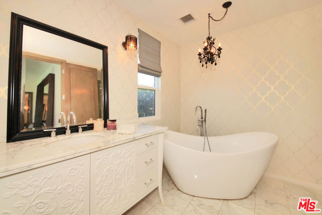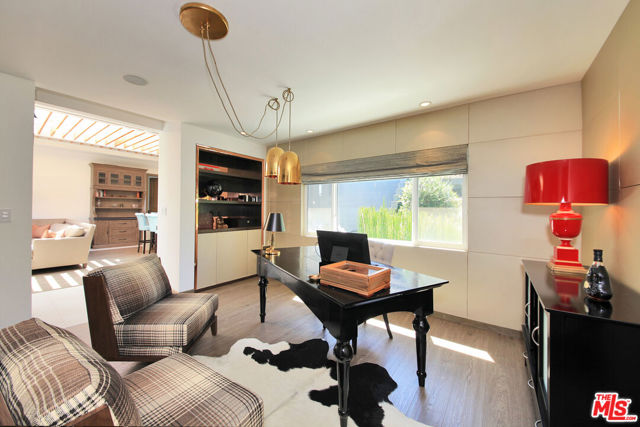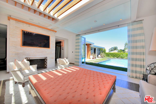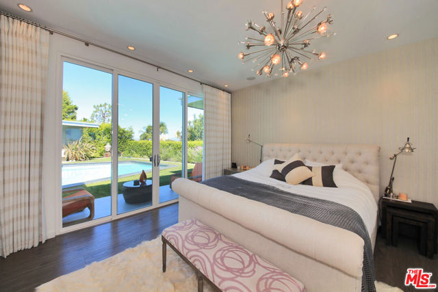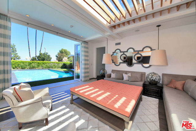 Nestled in one of Brentwood's most sought-after neighborhoods, this completely remodeled contemporary masterpiece blends luxurious design with effortless indoor-outdoor living. From the stunning grand formal entry, you're greeted with breathtaking sight lines to the sparkling pool and an abundance of natural light pouring through expansive glass doors and windows. The open floor plan boasts 4 spacious bedrooms and 4 1/2 spa-like bathrooms, including a serene primary suite with a generous walk-in closet. The chef's kitchen is a showpiece, featuring a massive center island, high-end stainless steel appliances, custom built-ins, and a skylight that floods the space with sunlight while framing views of the lush backyard. Perfect for entertaining, the private custom bar overlooks the pool, while multiple seating areas invite al fresco dining with views of the city lights and mountains. The resort-style backyard offers a sanctuary-like atmosphere, complete with seamless indoor-outdoor flow, manicured greenery, and an inviting pool deck. Additional highlights include soaring ceilings, recessed lighting, designer chandeliers, two elegant fireplaces, and meticulous custom finishes throughout. Every element of this home has been crafted to create a tranquil escape from the city's hustle and bustle. An ideal blend of sophistication and comfort in the heart of Brentwood, located in the Roscomare school district and adjacent to some of the most prestigious private schools in Los Angeles. Home can also be leased fully or partially furnished at a premium. Call to inquire.