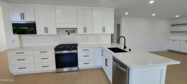 Welcome to 748 Azure Hills, a stunning 4 bed 3 bath remodeled and redesigned POOL home in the highly sought after Oakridge Estates of Simi Valley. The completely renovated home boasts great curb appeal and has been meticulously upgraded throughout epitomizing relaxed yet elegant living. You enter through the double doors and are greeted by a dramatic staircase with new modern iron railings. The large living room boasts 2 story ceilings and a giant picture window. Overhead recessed lighting has been added throughout. Enjoy hosting gatherings in the adjoining dining room with new slider and views to the backyard. The gourmet eat-in kitchen is equipped with new cabinets, quartz countertops, modern appliances and a breakfast bar/peninsula. The large family room is photo worthy with an electric fireplace flanked by custom cabinetry and shelving and is pre-wired for your big screen. There is a large bedroom downstairs which opens to it's own patio and a full bath. New windows, doors and flooring, new plumbing and electric, new base and case moldings and so much more! The laundry room completes the first floor. The master retreat with soaring ceilings has been improved with gorgeous custom woodwork and includes 2 large closets, one walk-in, and a completely redesigned en suite with custom tile work. Two additional bedrooms and a third bathroom complete the second floor. Enjoy summer BBQ's in your private pool oasis featuring a raised spa surrounded by custom rock river, and a built-in gas BBQ. The outdoor space is perfect for entertaining with multiple seating and lounging areas. The outside also features gated RV parking! You are also just steps away from a path to the community tennis and basketball courts. The 3-car garage has been professionally finished. This is a great place to call home!