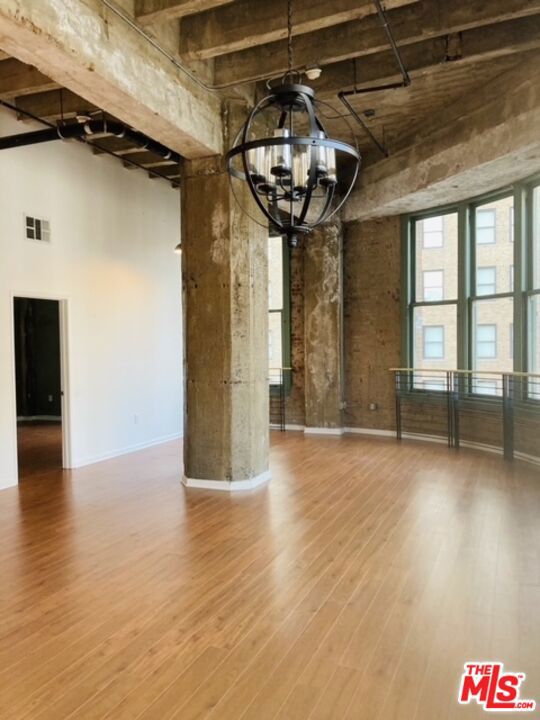 Originally a Los Angeles department store beautifully converted into live/work loft apartments with 14 foot ceilings, exposed concrete support columns and ceilings. Updated with modern stainless steel appliances. Each unit has a full size washer and dryer. Two full bedrooms with ensuite bathrooms. In addition there is a powder room. Lots of closet space. Rooftop deck with city views includes a Barbecue Grill. Secure underground parking is available. Centrally located near Whole Foods, Los Angeles Athletic Club, Per LA Hotel and Metro Station. This loft is a dramatic corner unit with curved windows. Northern and Eastern exposure with city lights view. Shown by appointment only.