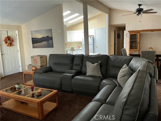 Very nice spacious home in a wonderful 55+ senior park. NEW A/C & Heating. The skylight gives a Bright Kitchen boasting NEW Range /Oven, New dishwasher and refrigerator comes with. New water glass sliding door in secondary bathroom. Newer carpet. Complete with laundry room including washer, dryer. Open floor plan with large great room. Roomy shed in the long carport. This is a must see home at a great price! Priced to sell. All residents must be 55+.