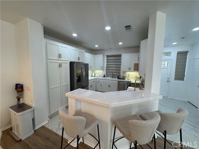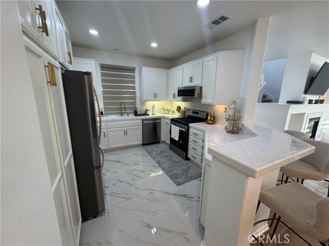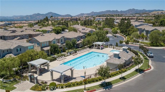 Welcome to this stunning Plan 1 Arbor townhome, set within the prestigious guard-gated Promenade community. This beautifully upgraded 2-bedroom residence enjoys a premium location just steps from the sparkling community pool and spa. As you enter, you’re greeted by sleek, upgraded flooring featuring expensive marble tile that elevates the entire space. The main level also includes a beautifully designed guest bathroom with designer-end finishes—perfect for visitors. The chef’s kitchen offers brand new appliances, tile countertops, and ample cabinet space, opening seamlessly to a cozy family room with a media niche and an inviting dining area. Upstairs, you’ll find two spacious bedrooms, each with its own private bathroom. Both bathrooms feature remodeled vanities for a fresh, modern touch. The impressive primary suite provides comfort and style, while the secondary suite offers excellent versatility. A built-in desk area at the top of the stairs is ideal for a home office or homework station, and the conveniently located upstairs laundry room adds maximum convenience. Step outside to your own private patio—perfect for entertaining or relaxing—surrounded by mature landscaping. Additional highlights include recessed lighting throughout, a 2-car attached garage with direct access and upgraded epoxy flooring, and newer carpet recently installed upstairs. Residents of the Promenade community enjoy resort-style amenities, including a sparkling pool and spa. The home is located within the award-winning Porter Ranch Community School (K–8) boundary (per LAUSD School Finder; buyer to verify). Plus, you’re just moments from The Vineyards, offering premier dining such as Lure Fish House, Patxi’s Pizza, and Gus’s BBQ, along with a state-of-the-art Whole Foods with an in-house restaurant, a luxury AMC movie theater, Mayweather Boxing + Fitness, and so much more. Experience the best of Porter Ranch living—this exceptional home has it all!