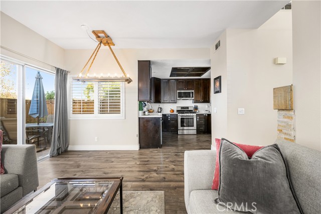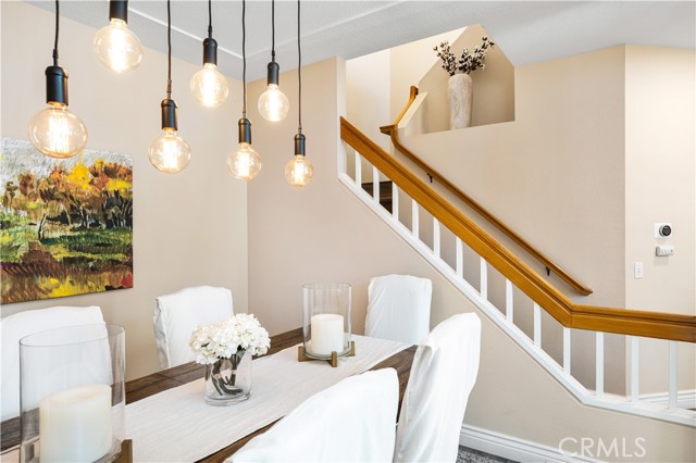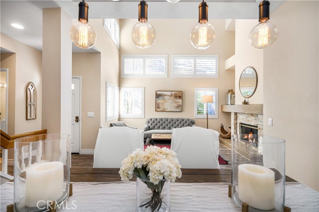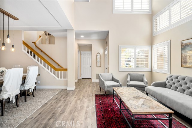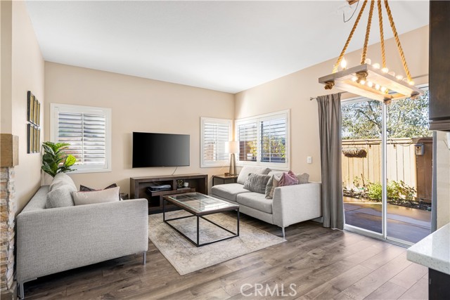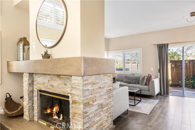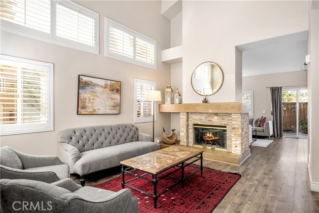 Welcome to this exquisite 3 bed, 2.5 baths townhome in the highly sought after Sierra verde Tract, near Tijeras creek Golf club. This beautiful home has been upgraded with high end laminate flooring all through out the house as well as newer stainless steel appliances & a new furnace. Enjoy the open floor plan and abundance of natural light. Walk in to an inviting vaulted high ceilings to your formal living along with natural stacked stone fireplace, designer paint. The renovated kitchen offers espresso cabinets, white beautiful quartz countertops, white tile backsplash and an oversized pantry. The spacious living room along with the kitchen overlook the beautiful backyard and enjoy plenty of natural light all day long. Custom Plantation shutters all through out & a separate laundry room for your convenience. Upstairs bedrooms are spacious with big closets, mirrored doors and offer plenty of natural light. Enjoy your oversized master bedroom & walk in closet. The master bathroom features renovated dual vanities with plenty of storage space & a relaxing tub. This end unit offers 2 car attached garage as well as a full sized 2 car driveway. You will get to enjoy a serene life living in this home and community where you have access to the HOA Pool, spa & barbecue area. Also you will enjoy access to all of RSM amenities including 4 pools, the beach club with its sandy beach, tennis courts and kids play areas, volley ball courts, parks, skate park, dog park, hiking & biking trails, walking distance to the distinguished school Arroyo vista K-8, Capo School district. Dont wait to make it your home.