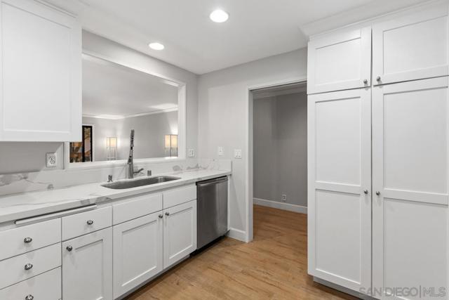 This remodeled two-bedroom, two-bath residence in the Boardwalk community offers single-level living in a prime La Jolla setting. The 1,080 sq ft interior features open, light-filled living spaces, a fireplace, and a large, covered balcony overlooking a serene greenbelt. The updated kitchen boasts quartz countertops, stainless steel appliances, and a wine refrigerator. Additional improvements include newer carpeting, a custom primary shower, and an in-unit Bosch washer and dryer. Two side-by-side parking spaces with storage and elevator access are located within the secure garage. Community amenities are comprised of a pool, spa, tennis courts, and a clubhouse. Ideally situated across from shopping and dining—such as Whole Foods, Trader Joe’s, Nordstrom Rack, and AMC Theatres—just blocks from the UCSD campus, and minutes from major freeways, medical facilities, La Jolla Shores Beach, and The Village. This property provides an exceptional combination of comfort and convenience.