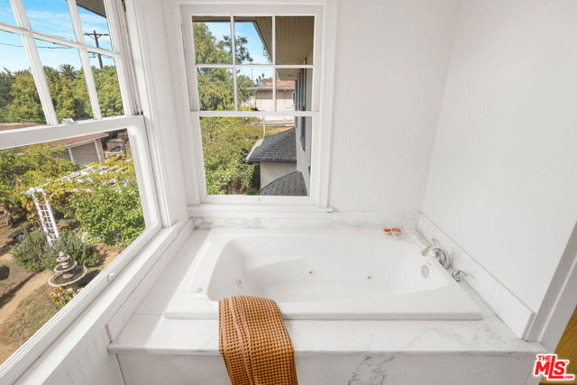 Easily the best bang for your buck offering in Lafayette Square. A contemporary expression of the Italian Mediterranean vernacular, this move-in-ready residence sits at the very heart of historic Lafayette Square, offering a rare synthesis of old-world romance and modern California ease. Reimagined in a meticulous, down-to-the-studs renovation and maintained with unwavering care ever since, the home radiates warmth, luminosity, and enduring character. A broad, welcoming front porch sets the tone, ushering you into interiors that feel simultaneously airy and intimate. The generous floor plan includes 4 bedrooms upstairs and a fully realized third-floor attic loft along with four beautifully appointed baths. Sunlight pours through the main-level rooms, which include a serene sunroom, a substantial home office/bedroom option, and two en-suite bedrooms. The primary suite evokes the quiet luxury of an Italian countryside retreat, complete with a fireplace that invites lingering evenings and a private balcony overlooking the tree-lined neighborhood. Ascending to the third floor reveals a flexible loft level (apx. 500 sf?), ideal as a playroom, studio, guest and storage space, or secondary office, enhancing the home's sense of scale and evoking the romance of a classic three-story Italian villa. Outdoors, the property unfolds into a lush Mediterranean garden sanctuary. A vibrant tapestry of lemon, pomegranate, apple, apricot, blood orange, and fig trees anchors the landscape, complemented by thriving grapevines, artichokes, rosemary, and flowering morning glories. A grape-draped pergola creates an enchanting setting for alfresco dining, while a burbling fountain and a dedicated Bocce Ball court infuse the grounds with a feeling of effortless leisure. With its rare four-car garage (giant ADU possibility), side garden, and an unmistakable spirit of both charm and sophistication, this home embodies the quintessential Los Angeles indoor-outdoor lifestyle, infused with just the right touch of Italian allure.