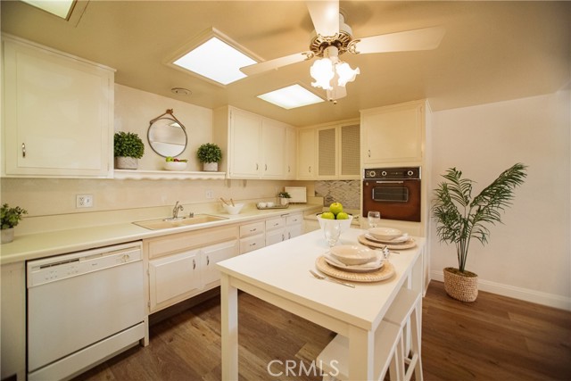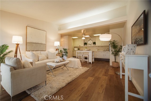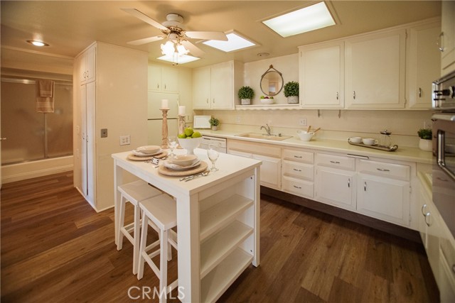 (M5-115C)(Carport 61-Space 21) Partially expanded one bedroom unit with enclosed patio in a fabulous location. Steps to the clubhouse 6, gym, pool, and golf course! The bedroom has been expanded and a large walk-in closet added with laminate flooring through-out, handy drive up unit with greenbelt frontage and a beautiful big tree, close carport (Carport #61, space #21) and the Leisure World Shuttle pick up bench is right in front of the unit. Two beautiful skylights, one in the kitchen and one in the bathroom, The unit has standard LW issued appliances (oven, cook top and refrigerator) and a dishwasher. This is a gorgeous unit in move in condition, a definite must see but hurry it won’t last! SENIOR COMMUNITY OFFERS THE FOLLOWING AMENITIES: 9 Hole Golf Course, Swimming Pool, Jacuzzi, Gym, Table Tennis, Shuffleboard, Billiards, Pickle Ball and Bocce Ball courts. Amphitheater, 6 Club houses featuring: Exercise Gym, Art Room, Sewing, Crafts, Woodshops, Lapidary, Pool tables; Over 200 Clubs, LWSB is a Security-Guard-Gated Community. Also, Library, Friends of Library Bookstore, Credit Union, Health Care Center, Pharmacy), Post Office and Café.