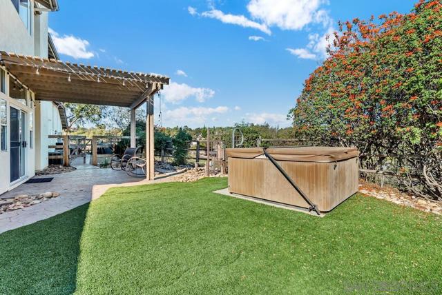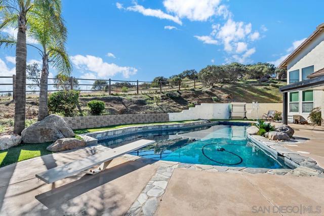 Beautiful 4 bedroom, 3 bathroom home privately situated on an expansive cul-de-sac lot with stunning hillside views. This property features soaring 20+ ft ceilings, a dramatic floor-to-ceiling fireplace, granite countertops, and an upgraded master ensuite. Enjoy a resort-style backyard with a large black-bottom pool, diving board, hot tub, and a covered patio with fireplace. Additional highlights include paid solar with 3 Tesla batteries, RV/trailer parking, and exceptional outdoor privacy. Low-rate seller financing available! A rare blend of space, efficiency, and modern comfort.