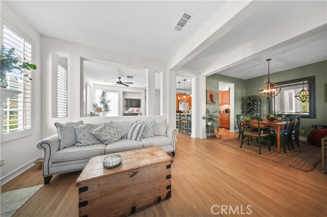 Nestled on a coveted corner lot location in the heart of Ladera Ranch, this extremely rare model feels like a love letter to refined California living. From the moment you step inside, you’re greeted by gorgeous hardwood flooring that flows seamlessly through every room, setting a warm, elevated tone that carries throughout the entire home. The layout is both impressive and intimate, a true rarity, featuring an expansive formal living room anchored by a beautiful fireplace, and a stunning formal dining room perfect for unforgettable gatherings. The kitchen is a dream in itself: thoughtfully designed with top-of-the-line appliances, sleek finishes, and a generous island that naturally becomes the heart of daily life, from Sunday brunch to late-night conversations. The home’s spacious family room opens effortlessly to the large outdoor patio, creating a romantic indoor-outdoor flow made even better by the fact that there are no neighbors on one side, giving the space an airy, private, and luxurious feel. Upstairs, the primary suite is a sanctuary of its own. Wake up to soft morning light and step onto your very own private balcony, a peaceful retreat perfect for slow mornings, evening breezes, or stargazing at night. The en-suite Master bathroom features a large walk in shower, separate soaking tub and superior walk-in closet. With its unique architecture, refined finishes, and thoughtfully curated upgrades, this home blends comfort and sophistication in a way that’s hard to find, and even harder to forget. All set within the vibrant, amenity-rich lifestyle of Ladera Ranch, where pools, trails, parks, and community events are just moments away.