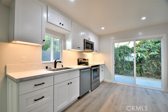Offering beautifully updated 2-story apartment in a small 4 unit complex. This Redondo Beach rear unit features a brand new kitchen with Calacatta-quartz countertops, large pantry, stainless steel appliances including range, microwave, dishwasher and refrigerator with water & ice dispenser, in-unit washer/dryer hookups with folding counter, wood-style flooring, new interior paint, designer fixtures, oversized bedrooms, 1 car garage parking plus 1 tandem space, with a large, private patio to help you unwind from the day and breathe in the salty scent of the Pacific. Building Features: Calacatta Quartz Countertops, Frigidaire Stainless Steel Appliances. In-unit washer/dryer hookups, Wood-style flooring, Calacatta Quartz Vanity, Large Outdoor Wraparound Patio. Air conditioned