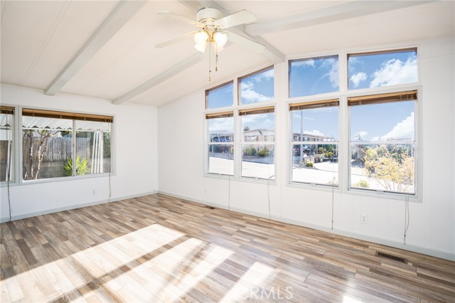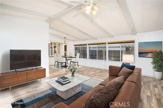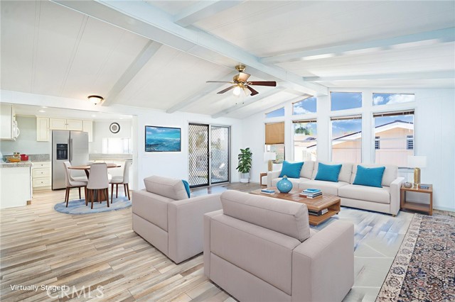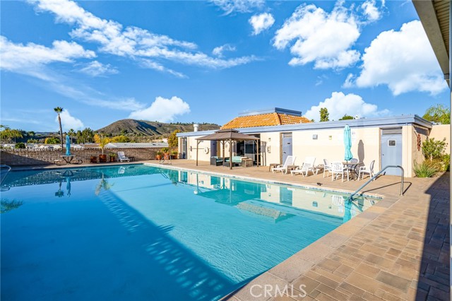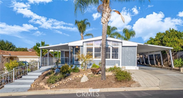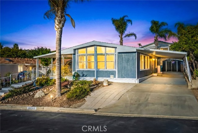 * VIEWS & BEAUTIFULLY UPDATED * This 3-bedroom home is located in the highly desirable 55+ community of Golf Knolls, where you own your own land. This home is on permanent foundation convenient for financing. A rare opportunity to live at the top of the hill, this home offers stunning mountain views and a highly sought-after open floor plan with two separate living spaces—ideal for flexible living, entertaining, or creating a cozy retreat. The home has been thoughtfully remodeled with upgraded flooring throughout, a spacious kitchen featuring granite countertops, and a freshly painted interior that feels bright and inviting. Additional updates include a new roof, providing peace of mind for years to come. A unique feature of this home is the large covered front porch with views of the Santa Rosa Plateau. The porch presents a generous outdoor living space, a perfect place to enjoy your morning coffee and, in the evening, admire the sunsets. Upon entering the home through the convenient glass sliding door off the porch the home opens into a generous size bright & open great room that accommodates the kitchen, casual dining area & living room featuring wood beamed cathedral ceilings, engineered wood flooring & ceiling fan. The home’s second entry leads to a large, light-filled formal living area, also designed with beamed cathedral ceilings, a ceiling fan, and two oversized picture windows that beautifully frame the surrounding views. Golf Knolls is an active community offering 3 pools, 2 spas, exercise room, clubhouse with community events, billiards room, a library, ping pong, card rooms, sauna, laundry facilities and BBQ areas. Minutes from dining, shopping and the Temecula wineries! A MUST SEE HOME