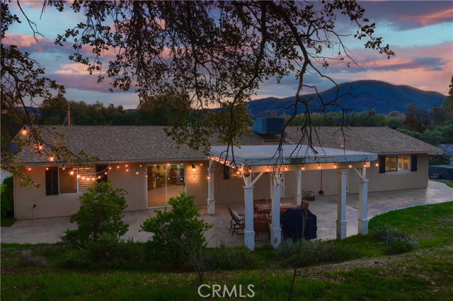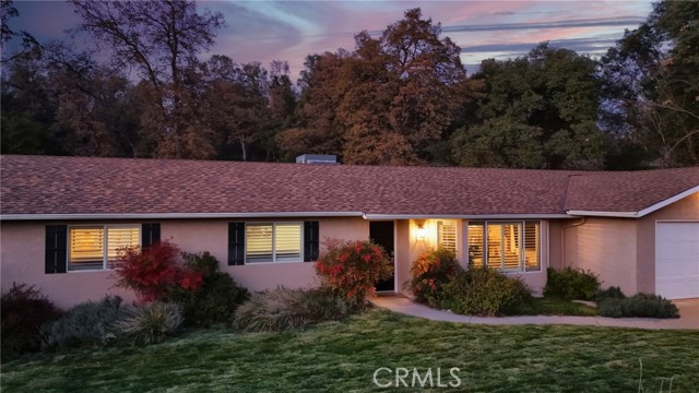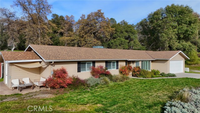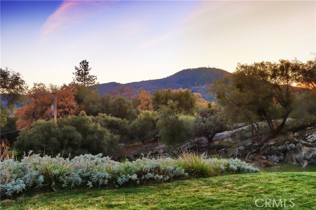Welcoming Sierra foothill home offering comfort, privacy, and exceptional access to some of California’s most celebrated destinations. Set on a peaceful double parcel with plenty of privacy and ideally located on a paved road, appreciate being less than five minutes from Oakhurst’s dining, shopping, and essential services, while still enjoying a quiet setting surrounded by mature landscape and mountain charm. The property is thoughtfully designed for enjoyable indoor/outdoor living. A lush front lawn and stamped-concrete patio create an inviting entrance, while the backyard offers a pergola shaded patio accented with string lighting for evenings, relaxing, dining, or hosting guests and the side yard nook with a hot tub is a peaceful spot to unwind while enjoying the sunset. Inside, the home features a calm, cohesive atmosphere with soft paint tones and natural light filtered through plantation shutters. Warm wood-tone hardwood floors span the living room, dining room, and hallway. The spacious dining room comfortably accommodates large gatherings and opens directly to the patio for easy flow during entertaining. The kitchen features natural stone flooring, good counter space, and an eat-at counter for guest interaction, and a layout that keeps the chef connected to the activity. A generously sized utility room with a door to the outside is a practical touch, ideal for shedding muddy shoes after outdoor adventures or for accessing the hot tub area without tracking through the home. Another practical touch is the Generac generator to power the whole house in case of a PG&E outage. All three bedrooms offer warmth and comfort with soft carpeting. The first bedroom feels dreamy and bright with its functional built-ins and plantation shutter filtered light. The second bedroom features generous closet space and additional built-ins for storage. The primary suite is spacious and elegant with a shabby-chic chandelier and featuring two separate closets. The en-suite features natural stone floors, a double-sink vanity, and a subway-tiled shower. Location is one of this home’s greatest assets. This home base is just 28 minutes from Yosemite’s Mariposa Grove and about an hour and fifteen minutes from Yosemite Valley, perfect for weekend hikes, snow play, and exploring the big trees. Beautiful Bass Lake is only 15 minutes away for summer swimming, boating, fishing, and picnics. Here you will find year-round adventure and convenience and comfort in everyday living!