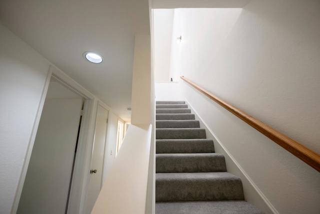 Experience the easy, convenient lifestyle of Hidden Oaks, a community known for its peaceful greenbelts, multiple pools and spas, and unbeatable walkability. You're just steps from markets, restaurants, theaters, the library, the Community Center, Skypark, and everything Scotts Valley has to offer. Step inside to a light-filled living room featuring sky-high vaulted ceilings, a cozy fireplace, and tranquil greenbelt views. The desirable reverse floor plan places both bedrooms on the entry level, with the kitchen, dining area, and living room upstairs. Enjoy al fresco dining on the second-floor balcony overlooking one of the community's spa and greenbelt areas. The spacious primary bedroom includes its own private patio, vanity area, and full en-suite access. Down the hall you will find the guest bedroom and laundry. The home also features fresh interior paint, new flooring, and numerous upgrades throughout. A detached 1-car garage provides ample room for parking and extra storage. Hidden Oaks residents enjoy multiple pools, spas, and beautifully maintained greenbelt spaces. Plus, you'll love the effortless access to grocery stores, the transit center, parks, dining, and more. With Highway 17 just moments away, you're minutes to the beach or an easy commute into Silicon Valley.