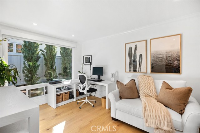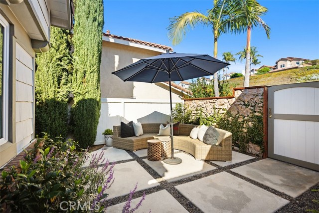 ONE STORY HOME WITH A VIEW IN RANCHO NIGUEL!! Experience timeless style and modern comfort in this beautifully remodeled residence, thoughtfully curated with luxury materials and exceptional craftsmanship. Hardwood and marble flooring flow throughout, with French white oak in the kitchen, American white oak in the office and primary suite, and natural travertine in the living and entry areas. The fully renovated kitchen features custom cabinetry, quartz countertops, a RO water filtration system, Sub-Zero refrigerator, Thermador range and dishwasher, and a sleek undermount sink. Both bathrooms showcase exquisite finishes, the owner’s bath with slate porcelain flooring and an Emperador marble shower enclosure, and the guest bath with Italian mosaic Carrara marble flooring and a quartz slab shower surround. Upgrades include a Culligan whole-house water treatment system, PEX plumbing, newer windows and French doors, solid brass door hardware and air vent covers, custom lighting, and designer fixtures throughout. Exterior enhancements feature a redesigned entry courtyard with concrete walkways, built-in planters, a privacy wall with security gate, and a backyard patio extension framed by a full-length privacy wall with ¾" glass—perfect for enjoying amazing sunset views. Italian cypress and lush perennial plantings add natural beauty and year-round color. Located in the desirable Rancho Niguel community with access to The Club at Rancho Niguel, offering tennis courts, pickleball courts, swimming pools, a gym, racquetball courts, clubhouse, and more. This exceptional home offers a rare blend of artisan detail, refined upgrades, and enduring quality, perfect for those seeking elevated coastal-close living. **Partially furnished available**