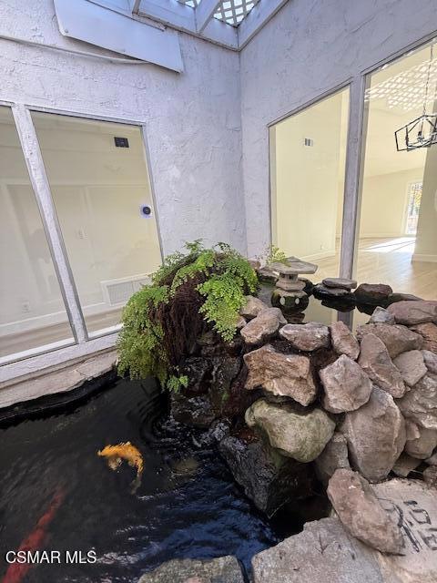 Recently renovated spacious single story home spanning more than 1700 SF with two bedrooms, a flex space for a home office, dining area, family room and views of the lush greenbelt. Renovations include a NEW kitchen with beautiful white cabinetry, quartz counters; farmhouse sink and black accent fixtures; and NEW contemporary flooring throughout. The primary bedroom has direct access to the spacious patio with views of the beautifully landscaped common area. The ensuite primary bath has dual sinks, a remodeled shower with a bench accented by a mosaic floor and sleek walls and walk-in closet with organizers. Vaulted ceilings, recessed lighting and soothing Koi pond along with a two car direct access garage, indoor laundry and tons of storage add to the appeal of this home!