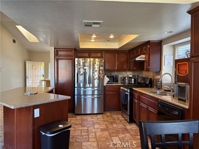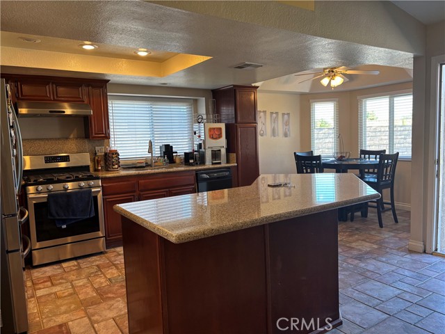 A fabulous single story home with views, located in the sought after "Four Seasons" community, next to Corona Hills! 4 bedrooms, 2 baths, 3 car attached garage--all on one level without any interior steps. Very spacious living room with high ceilings and a custom walk-in bar. The gourmet kitchen offers granite countertops, a huge island with bar sitting, a newer stove with 4 burners & a griddle, and an oven with self-cleaning feature. Charming family room features a cozy fireplace and a door to the patio. The dining area with a ceiling light/fan is just off the kitchen. All bedrooms are of a great size and have a ceiling fan/light. The luxurious primary suite boasts his and her walk-in closet, a patio door, and an en suite bath with a separate shower and tub, dual sinks, etc. Two of the three secondary bedrooms have a large closet. Newer water heater. Beautiful tile flooring in entry, living room, family room, hallway, baths, and kitchen. Individual laundry room with built-in cabinets. 3 car attached garage has a direct access to the house. Central AC and heating. Beautiful curb appeal. Enjoy the mountain views in the large backyard! The HOA amenities include pool, spa, 2 tennis courts, etc. Conveniently located off MCKINLEY exit off 91 Fwy. One exit to 15 Fwy. Short drive to Kaiser Riverside, downtown Riverside, Mission Inn, etc. Super clean! Call today!