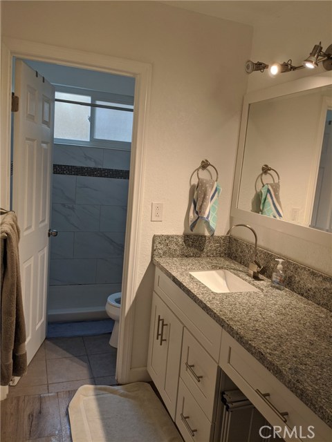 Ground floor 1 bedroom 1 bath condo with carport in gated MacArthur Village. This beautiful home has been fully remodeled with new double pane windows, newer A/C, and laminate flooring throughout. The kitchen features white kitchen cabinets, granite counters, and stainless steel appliances. The remodeled bath has large granite counters, and an over-sized walk-in shower. This home is an end unit next to a park. All this is steps away from fine dining and shopping at South Coast plaza and easy access to freeways.