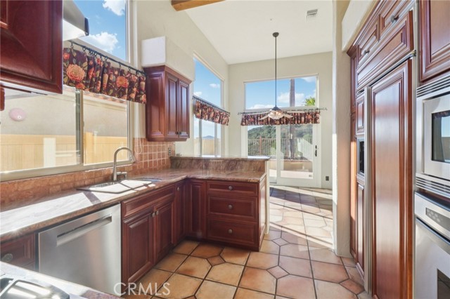 Stunning luxury residence located in the exclusive, gated community of Emerald Heights. This immaculate home has been thoughtfully upgraded with high-end finishes throughout. Upon entry, you are welcomed by warm, real wood flooring, expansive picture windows that flood the home with natural light, and striking real wood beam ceilings. The inviting family room and kitchen feature custom-cut tile flooring, creating a cohesive and naturally elegant feel. Every room is enhanced with solid wood doors, upgraded lighting, and designer ceiling fans, reflecting the home’s exceptional craftsmanship. Unwind in the spacious loft, complete with a stacked-stone fireplace—perfect for relaxing or enjoying a quiet evening. The primary suite boasts a beautifully remodeled spa-inspired bathroom featuring a large walk-in shower and an impressive walk-in closet. The gourmet kitchen is appointed with rich wood cabinetry, a massive built-in refrigerator, and thick granite countertops—ideal for both entertaining and everyday living. Step outside to the outdoor BBQ area and take in breathtaking panoramic views that feel endless. Low-maintenance turf and lush tropical landscaping make the backyard both beautiful and effortless. Lets not forget there is plenty of room for all your toys in the built out 3 car garage. Emerald Heights offers 24/7 guarded security and resort-style amenities including parks, playgrounds, an Olympic-style pool, spa, fitness center, and more. This one-of-a-kind home is a true gem and a rare opportunity in an exceptional community.