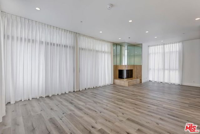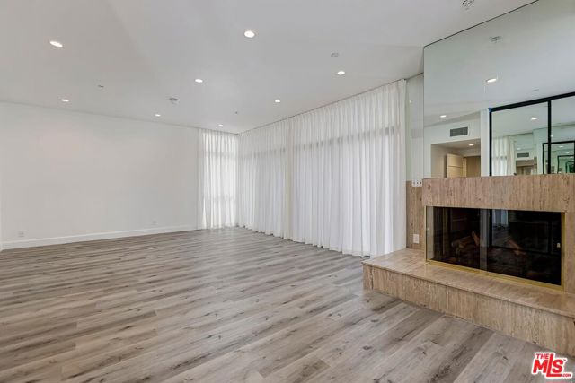 Contemporary condominium located on a beautiful, tree-lined street north of Burton Way in prestigious Beverly Hills. This updated 3 bedroom, 2.5 bath unit is filled with natural light and accessed through a dramatic black and white tiled formal entry with a private elevator. Thoughtfully designed, the unit features mirrored walls, floor-to-ceiling windows, and a combination of hardwood and marble floors. The expansive living room offers high ceilings, serene treetop views, a large balcony, a wet bar, and a fireplace. The designer kitchen includes a breakfast area, marble countertops and backsplash, dual ovens, a direct trash chute, and stainless steel appliances. A large bonus room maybe used as an office. The spacious primary suite features a fireplace, extensive cabinetry, walk-in cedar closets, and a built-in vanity. The en-suite primary bath includes a separate marble shower, a spa tub, and double sinks. The property offers three secure subterranean parking spaces. Available February 2026. By appointment only. No sign on the property.