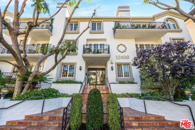 Contact LA1 for details. Enter the curb appeal-filled condominium building, surrounded by lush landscaping and a peaceful fountain. Through the formal entry, you'll be welcomed by high ceilings and an abundance of natural light. The home features hardwood floors, crown moldings, custom zebra shades, and blackout shades in the bedrooms. The living and dining areas are filled with light, and the kitchen includes granite countertops and in-unit laundry. There are two spacious bedrooms, each with upgraded bathrooms and plenty of storage. The primary bathroom has a double sink, bathtub, shower, and a walk-in closet. Central air and heat, as well as two parking spaces in the gated community garage, are included. The intimate, controlled-access building also has an elevator. Located just west of Century City and east of Westwood Village, this condo faces south, offering a fantastic location north of Santa Monica Blvd.
