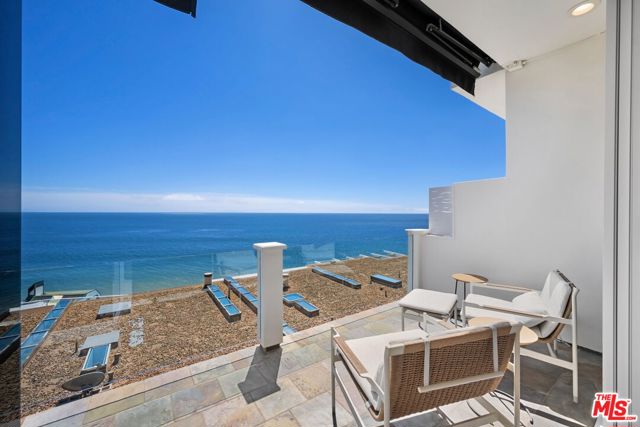 Beautiful bluff two-story Richard Neutra designed living space overlooking Escondido Beach. Enjoy panoramic ocean views from two of three balcony areas. Upstairs primary boasts a walk-in closet and covered balcony while the 2nd bedroom could be used as an additional office with its balcony. Enjoy the water and sun from this mid-century inspired condominium in the private and secluded Holiday House. With a private path to Geoffrey's and the beach, what else do you need? Offered furnished or unfurnished. Lease amount for summer/short term to be $22,000/Month.