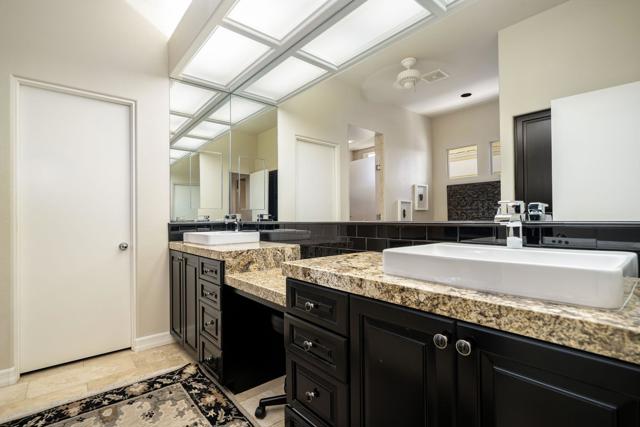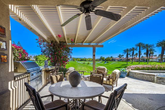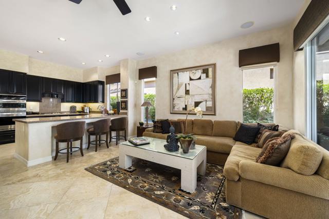 Private Pool/Spa, Casita, Double Fairway Views and GOLF Membership available to Buyer with no wait! This updated Palo Verde 3G is elevated with long double fairway views of Grove #'s 14 & 15 at Indian Ridge CC. Offered Turnkey Furnished with OWNED Solar (installed in 2023). This 4 bedroom home includes a detached 1 bedroom/1 bathroom Casita off the large front courtyard. Expansive and private course and mountain views! Fairway patio features a pool & spa with water feature, covered built-in BBQ area, and a generous seating area with fire table...great for entertaining! Open floor plan - living room, dining room, wet bar, family room & dining room...all share the same great views. Dining room looks out to the front courtyard & opens to the great room. Family room opens to the kitchen & patio by BBQ area. Kitchen features granite countertops and stainless appliances. A separate Wine Closet is in the hall just off the kitchen. The Primary Suite is a luxurious retreat with 2 closets (1 a large walk-in). Ensuite bathroom features granite counters, dual sinks, tub & separate shower. The 2 guest rooms are en suite and offer great privacy for your guests (one is currently used as office). Detached Casita includes 1 bedroom + ensuite bathroom. Close to the clubhouse, this home is a cart ride to the sports club, tennis & golf. HOA monthly dues include security, cable & internet, all gardening, exterior paint, roof maintenance, exterior water, exterior pest control and trash. Indian Ridge CC features two Arnold Palmer Signature golf courses, tennis/ pickleball facilities, a fitness center, a full-service spa, two restaurants, 38 community pools/spas & active social calendar. Come and join the fun!