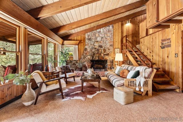 A rare opportunity to own a peaceful yet refined mountain retreat set on .52 private acres — where mornings begin with fresh pine air and evenings end under quiet, star-filled skies. Tucked among Pine Valley’s scenic, pine-lined community, this distinctive home blends privacy, warmth, and accessibility — just 3 minutes to I-8, making trips to San Diego, the coast, and surrounding mountain towns refreshingly simple. Mountain living without true isolation. Wrapped in natural wood from floor to ceiling, the soaring interiors create a cozy yet open atmosphere. A dramatic floor-to-ceiling rock fireplace anchors the main living space, offering the perfect setting for winter evenings, holiday gatherings, and slow, peaceful weekends away. The layout includes one enclosed primary bedroom, three bathrooms, and an expansive loft spanning the length of the home — a striking architectural feature providing exceptional flexibility for additional sleeping space, a secondary living area, office, game room, or creative retreat. Recent improvements include a newer roof and updated mini-split heating and air conditioning systems for efficient year-round comfort. Offered with the option to purchase fully furnished, allowing for a seamless transition into mountain living as a full-time residence, weekend escape, or second home. With over half an acre of privacy and close proximity to hiking, biking, and outdoor recreation, this Scrub Jay Lane property captures the character, serenity, and slower pace that define Pine Valley living. A Refined Mountain Retreat set on .52 private acres, this distinctive home features soaring wood interiors, a dramatic rock fireplace, and peaceful tree-filled surroundings. Tucked among the pines, this warm and inviting retreat captures everything people love about mountain living. The main living space is anchored by an impressive rock fireplace, while rich wood tones create a cozy yet open atmosphere.The layout includes one enclosed primary bedroom, three bathrooms, and an expansive open loft that spans the length of the home — a striking architectural feature that offers remarkable flexibility. Whether used as additional sleeping space, a secondary living area, office, or creative retreat, the loft provides generous room and visual impact. With over half an acre of privacy and close proximity to hiking, biking, and outdoor recreation, this Scrub Jay Lane property offers serenity, character, and the slower pace that defines Pine Valley living.