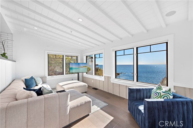 Experience the ultimate beachfront living in this beautifully restored 3-bedroom, 3-bath home located in Laguna Beach's historic Woods Cove. Available for both short and long-term furnished rentals. This coastal contemporary sanctuary offers unobstructed white water views of the waves crashing over Arch Point's picturesque rocks, providing a stunning backdrop for your retreat. Step inside to find an elegantly transformed interior with modern appliances and fixtures. The spacious gourmet kitchen with a contemporary feel opens up to the living room, creating an inviting and functional living space that enjoys the mesmerizing ocean views. The home features beautiful cottage windows, wood flooring throughout, and three comfortable and well-appointed bedrooms, including one located upstairs and two downstairs that open up to an enclosed patio. Wake up to the sound of the surf and walk to one of the best coffee shops in town, Cafe Heidelberg or Laguna Coffee, before heading out to explore the many great restaurants located just around the corner. Indulge in the delicious cuisine at Mozambique, Wine Gallery, Selanne Steak House, Saigon Beach, Seahorse Bar, or Maro Grill, or take a leisurely stroll to the Surf & Sand Resort for a meal or happy hour with panoramic ocean views. You can also head to the Ranch Golf Course or Montage Resort and Spa for some fun and 5-star dining. Located just steps away from the beach, this vacation home offers direct access to the sand, making it perfect for beach lovers who want to enjoy the sun, sand, and surf at their doorstep. You can also take a scenic walk along the coastline, explore the art galleries, go shopping, or visit the town's many other attractions. With everything just a short stroll away, you won't need a car to enjoy the amazing Laguna Beach experience. So come and live your dream in this beautiful beachfront home located across street from beach access.