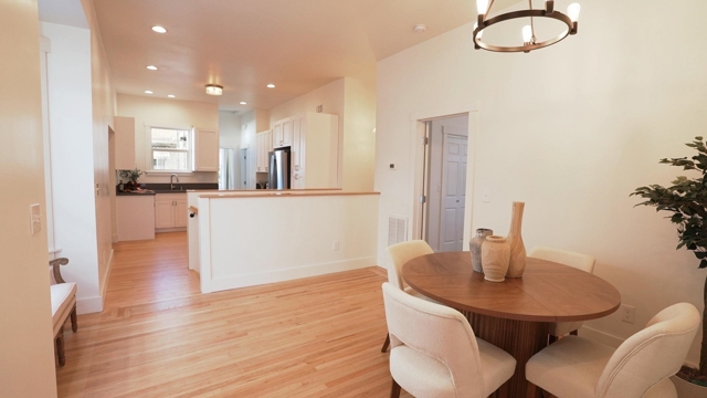 Originally built in 1896, this beautifully restored Victorian has been thoughtfully and completely renovated with permits, blending character with modern comfort. The home offers 5 bedrooms, 2 full bathrooms, a formal living room and dining room, a versatile bonus room, a full-size garage, and one additional driveway parking space. Enter through the historic handcrafted front door into a welcoming living room, where an original stained-glass window sets a warm and timeless tone. Upstairs, restored oak floors run throughout, complementing a sleek and functional kitchen equipped with brand-new appliances. This level also features two spacious bedrooms and a third room ideal for a home office. The lower level offers two additional bedrooms, a bonus room perfect for guests or hobbies, a full bathroom, a side-by-side laundry closet, and direct access to the full-size garage. Just off the kitchen, a cozy back deck overlooks a charming, low-maintenance backyard—an ideal spot for morning coffee or relaxed outdoor dining. A rare opportunity to own a classic Victorian with modern updates, flexible living spaces, and everyday functionality.