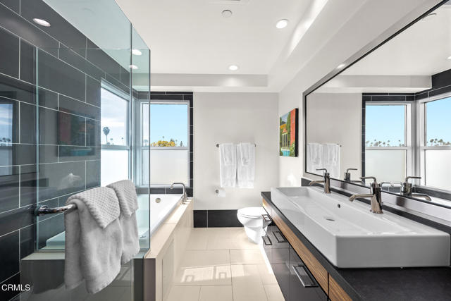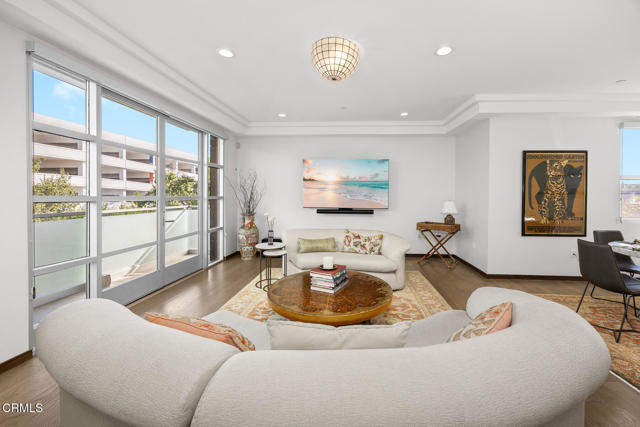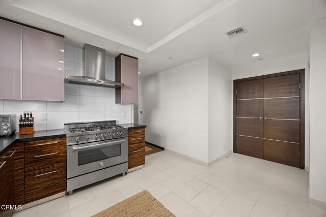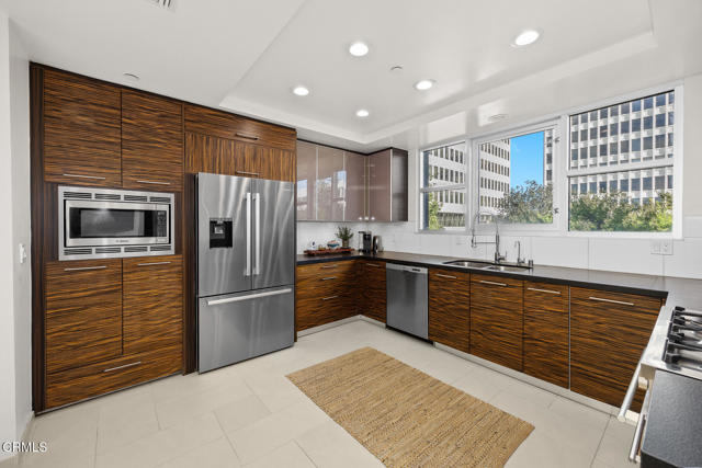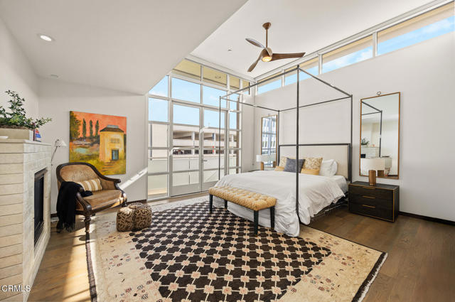 Inspired by Bauhaus architecture, Hudson Terrace is a modern luxury penthouse built in 2009 in Pasadena's vibrant South Lake Avenue District. Ideally positioned across from the Pasarroyo Business Complex and 1 block from dining, shopping, and fitness--including Trader Joe's, Erewhon, Macy's, and LA Fitness--this front‑facing penthouse offers exceptional urban convenience in one of the city's most desirable neighborhoods. The exterior features a Trespa Meteon rain shield system, ivory brick and stucco detailing, sandblasted glass balcony railings, and expansive floor‑to‑ceiling windows that fill the home with natural light. Spanning three levels with no common walls, the residence provides loft‑like living experience. The dramatic living room showcases resurfaced hardwood floors, a precast stone corner fireplace, French Deco capiz shell sconces, custom Hunter Douglas roller blinds, and floor‑to‑ceiling dual‑paned glass doors opening to a balcony overlooking oak‑lined Hudson Ave. Updated electrical circuitry and Lutron Caseta dimmer‑controlled recessed lighting enhance the modern ambiance. An elegant guest bath with marble counters and intricate tilework completes the main level. The gourmet kitchen features sleek Italian‑designed cabinetry, honed black granite countertops, a Bertazzoni gas range and hood, Bosch stainless steel appliances, filtered water at both sink & refrigerator, a walk‑in storage room, utility closet, and a dedicated balcony with stainless FireCraft smoker grill. The primary suite offers vaulted ceilings, remote‑controlled roller shades, a craftsman wood ceiling fan, a gas fireplace, and a custom Dall'Agnese walk‑in closet. The spa bath includes a 6 jet soaking tub, floor‑to‑ceiling glass shower, double Duravit sinks with Kohler polished nickel fixtures, and imported stone. A second bedroom with a mirrored wall functions as a guest room, gym, or office, with an adjacent bath featuring a spacious travertine and mosaic steam shower. A private rooftop terrace crowns the penthouse, offering sweeping city & mountain views. Additional highlights include 4 balconies, 2 side‑by‑side parking spaces near the elevator and storage room. Upgrades: Nest climate control, Lutron Caseta lighting, Hunter Douglas blinds, Restoration Hardware lighting, Bosch refrigerator, LG ThinQ washer/dryer. This pristine residence is moments from Pasadena's iconic: Caltech, ArtCenter, Langham, Huntington Library, Norton Simon, Old Town, Playhouse & Rose Bowl.