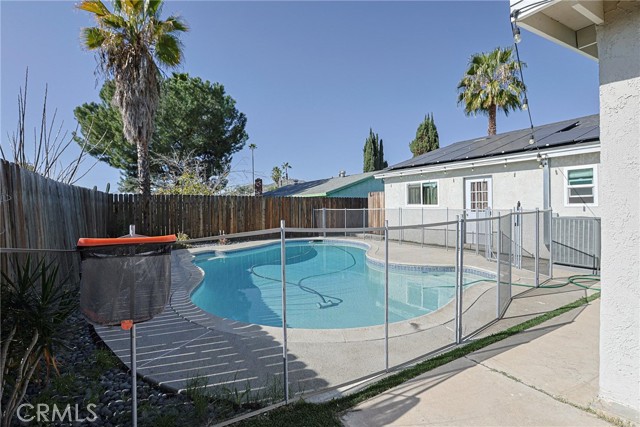 Welcome to 24675 Singer St, Moreno Valley! This beautifully updated single-story home offers comfort, efficiency, and outdoor enjoyment in a well-established neighborhood. Step inside to a bright and inviting open-concept living space featuring recessed lighting, neutral tones, and modern flooring throughout. The spacious living room flows effortlessly into the dining area, creating an ideal layout for both everyday living and entertaining. The upgraded kitchen shines with white shaker cabinetry, quartz countertops, stainless steel appliances, and a stylish tile backsplash—perfect for home chefs and casual gatherings alike. Ample cabinet space and a functional layout make this kitchen as practical as it is attractive. The home features comfortable bedrooms with generous natural light and an updated feel throughout. Energy efficiency is a major plus with solar panels already installed, helping reduce monthly utility costs, along with a central A/C system approximately 4 years old for year-round comfort. Step outside to your own private backyard oasis complete with a sparkling swimming pool—ideal for summer entertaining, relaxing weekends, or hosting family and friends. Low-maintenance landscaping enhances both curb appeal and ease of ownership. Additional highlights include a detached two-car garage, a wide driveway, and excellent curb appeal. Conveniently located near schools, parks, shopping, dining, and freeway access, this move-in-ready home offers both comfort and convenience. A rare opportunity to own an energy-efficient pool home in Moreno Valley—don’t miss it! Buyer assistance may be available. Qualified buyers may be eligible for up to $20,000 that can be applied toward closing costs and/or interest rate buydown, subject to buyer qualification, lender approval, and program availability. Buyer to verify all financing options independently.