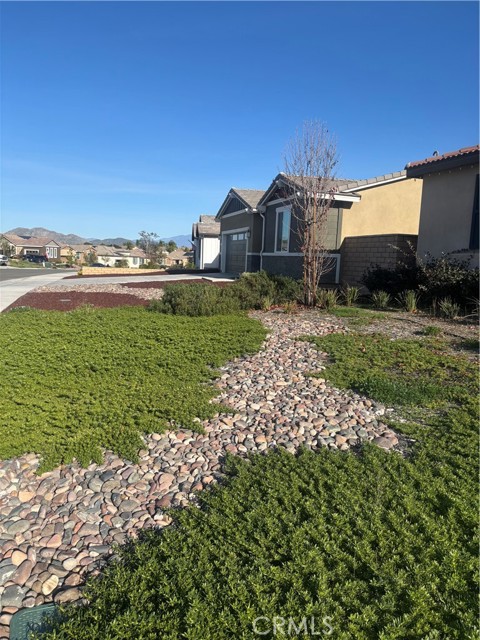 Welcome to this beautiful home nestled in the desirable Quartz Ranch at Newport Estates in Menifee. Located on a quiet cul-de-sac, this well maintained single-story home offers a blend of modern comfort, thoughtful upgrades, and everyday functionality, all within a welcoming neighborhood setting. This move in ready home Spans approximately 2,767 square feet, the home features 5 Rooms. 4 bedrooms (One Primary and one Ensuite) and an enclosed private office, 3.5 bathrooms, and a spacious open-concept layout designed for both entertaining and comfortable living. Natural light fills the living spaces, highlighting the seamless flow between the kitchen, dining, and main living areas. Designer lighting and custom window shutters add a finished touch, while the open design creates an inviting area for gatherings large or small. The kitchen is the heart of the home, offering a large island, generous counter space, ample cabinetry, walk-in pantry, and an easy connection to the surrounding living areas. Whether entertaining family or guests or enjoying a quiet night in, the layout supports a comfortable yet functional lifestyle. Exiting off the main living spaces, the backyard is ready for your imagination, a pool sized lot providing a functional yard with a 50x12 patio cover ready to enjoy. A Solar System, Tankless Water and EV ready adds long-term value and energy efficiency, enhancing the home’s overall appeal. The property offers a balance of outdoor space with a view of the mountains. The home’s location provides convenient access to local amenities, schools, shopping, and dining, while still offering a sense of privacy and neighborhood charm. With its modern construction, single-story design and community, and desirable cul-de-sac setting, this home presents a rare opportunity to enjoy newer construction without the wait. Combining comfort, efficiency, and style, this Quartz Ranch residence is well equipped for those seeking the best. Professional Photos soon. EXCLUSIONS: INCLUSIONS: